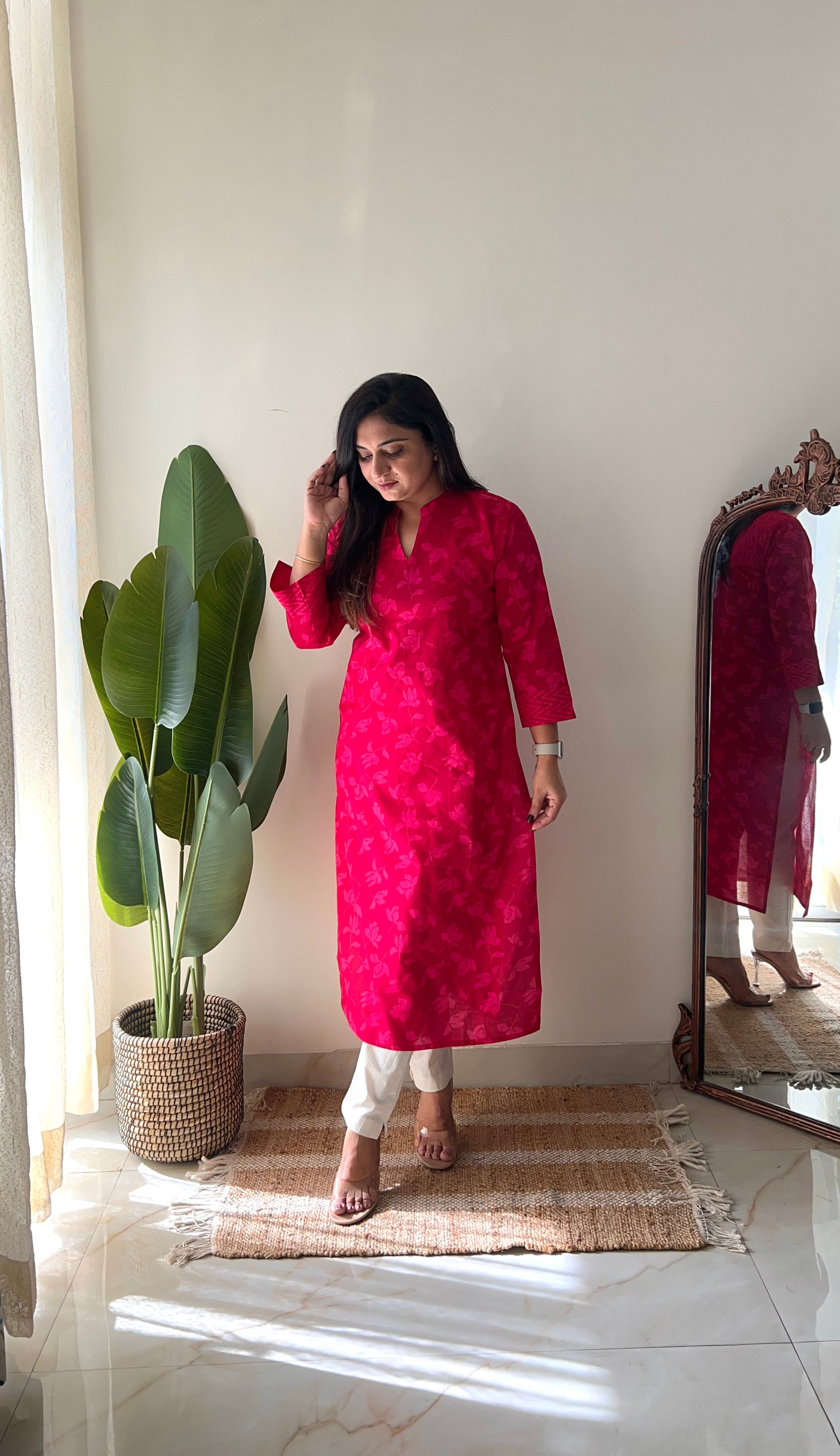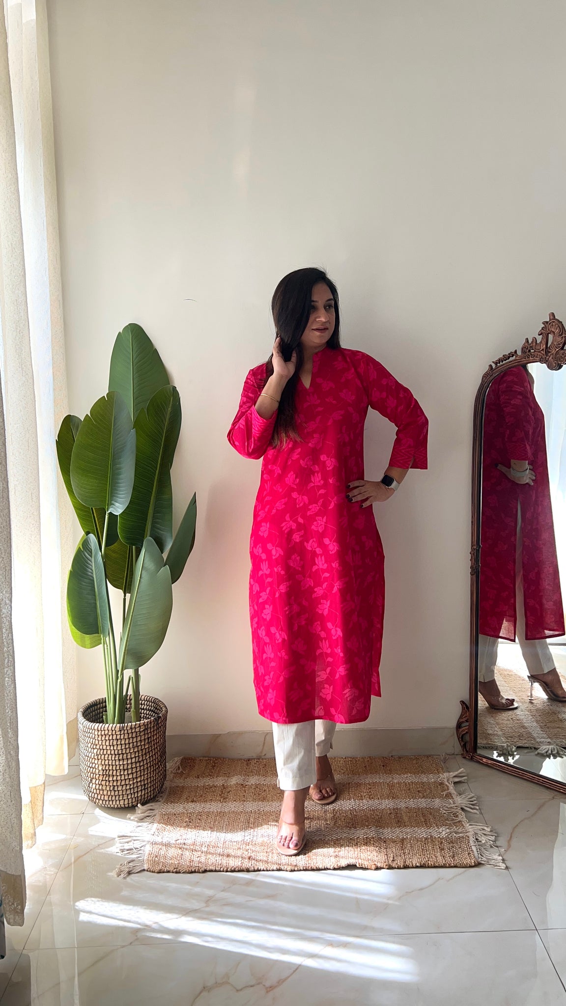 Pink Floral Casual Cotton Straight Kurta - The Jaipur Studio