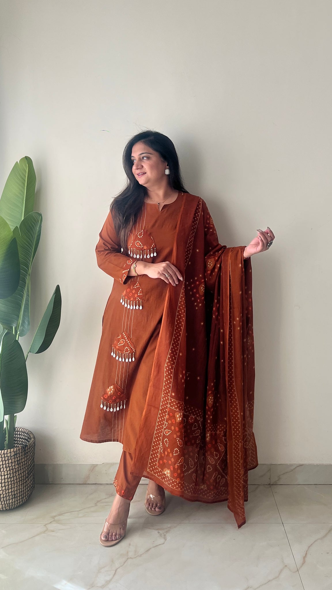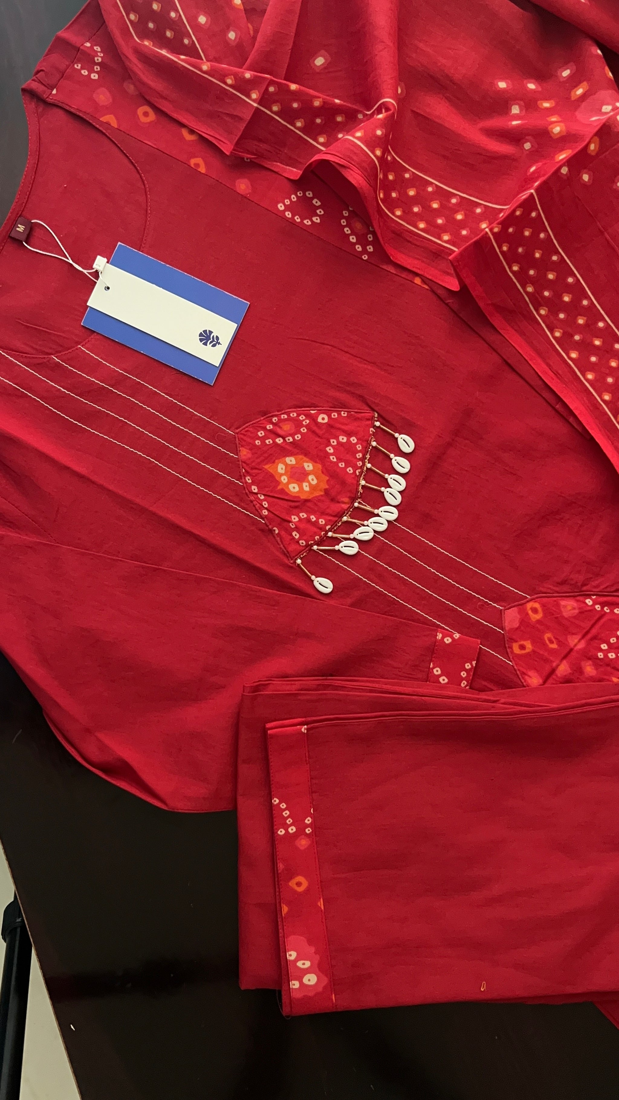 Raha MulCotton Bandhani Hand Detailed Pant Set