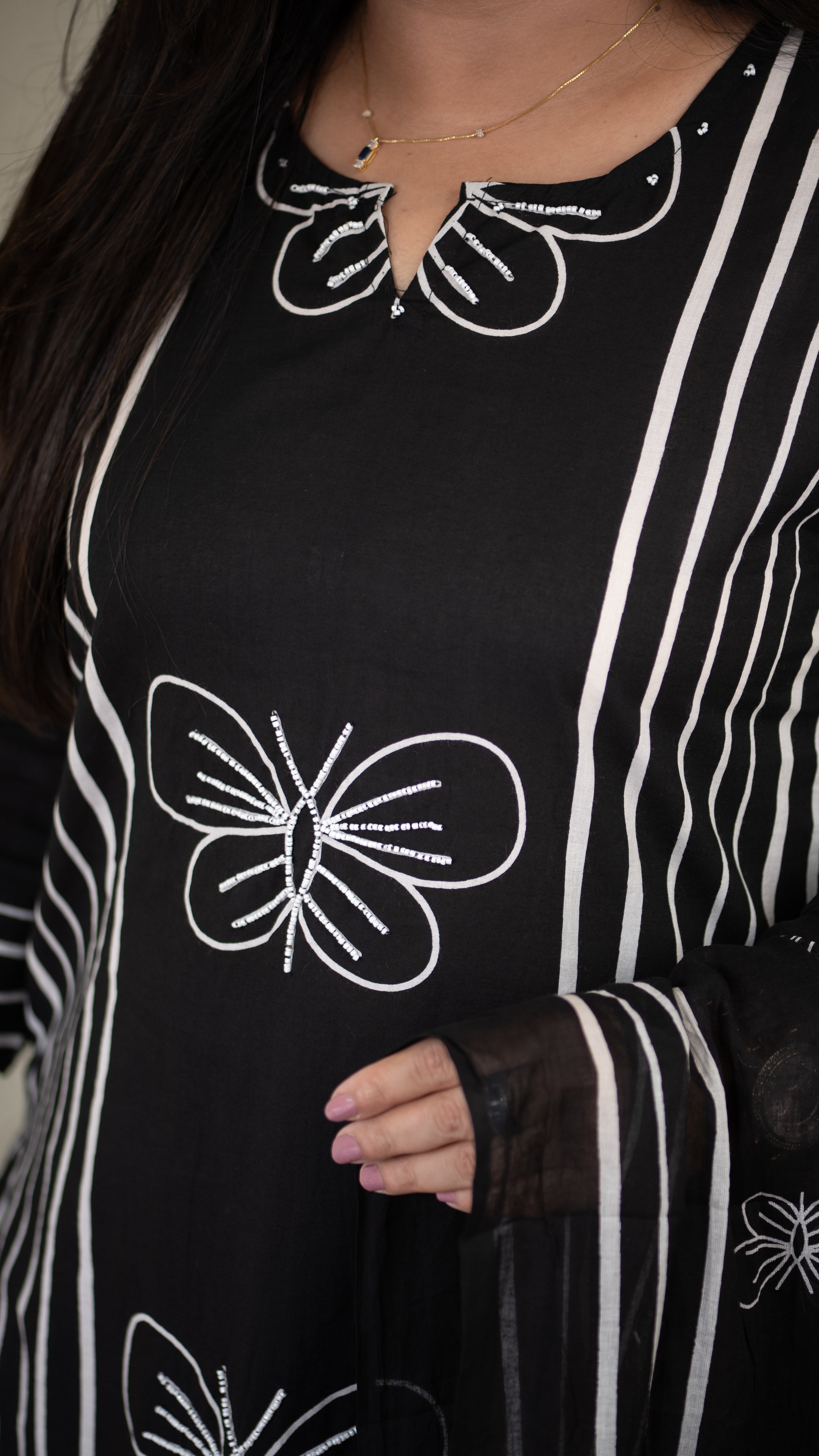 Made with 100% cotton, it features beautiful Pearl Handembroidery On top, along with a loose divider for added style.