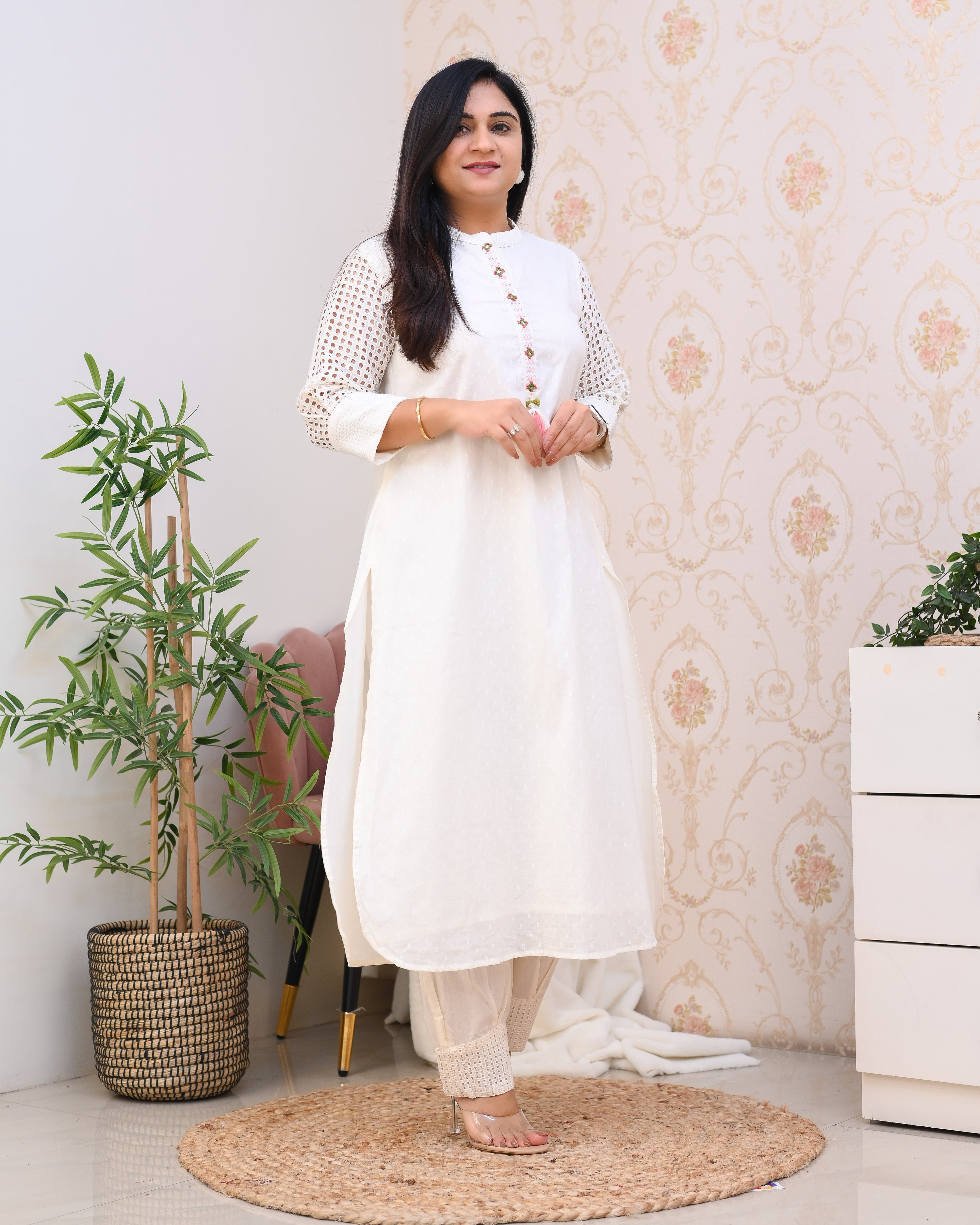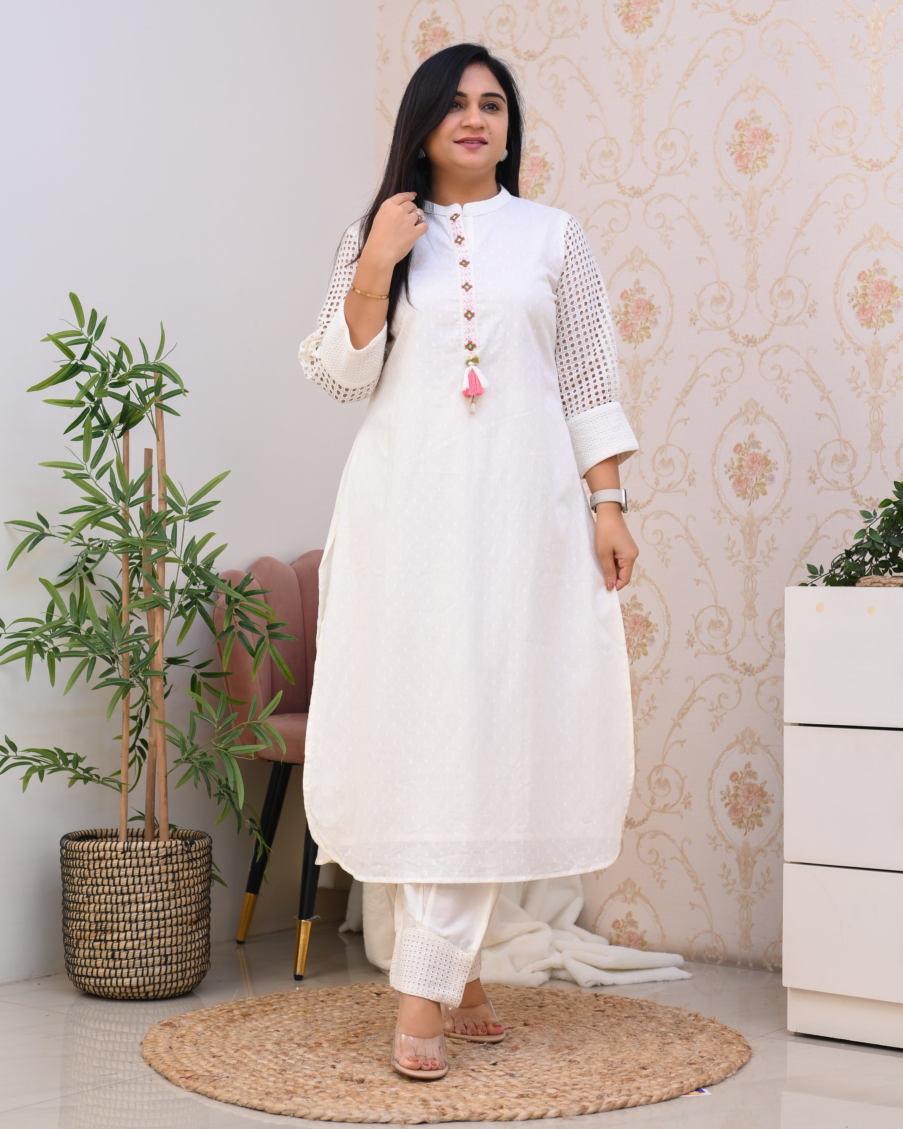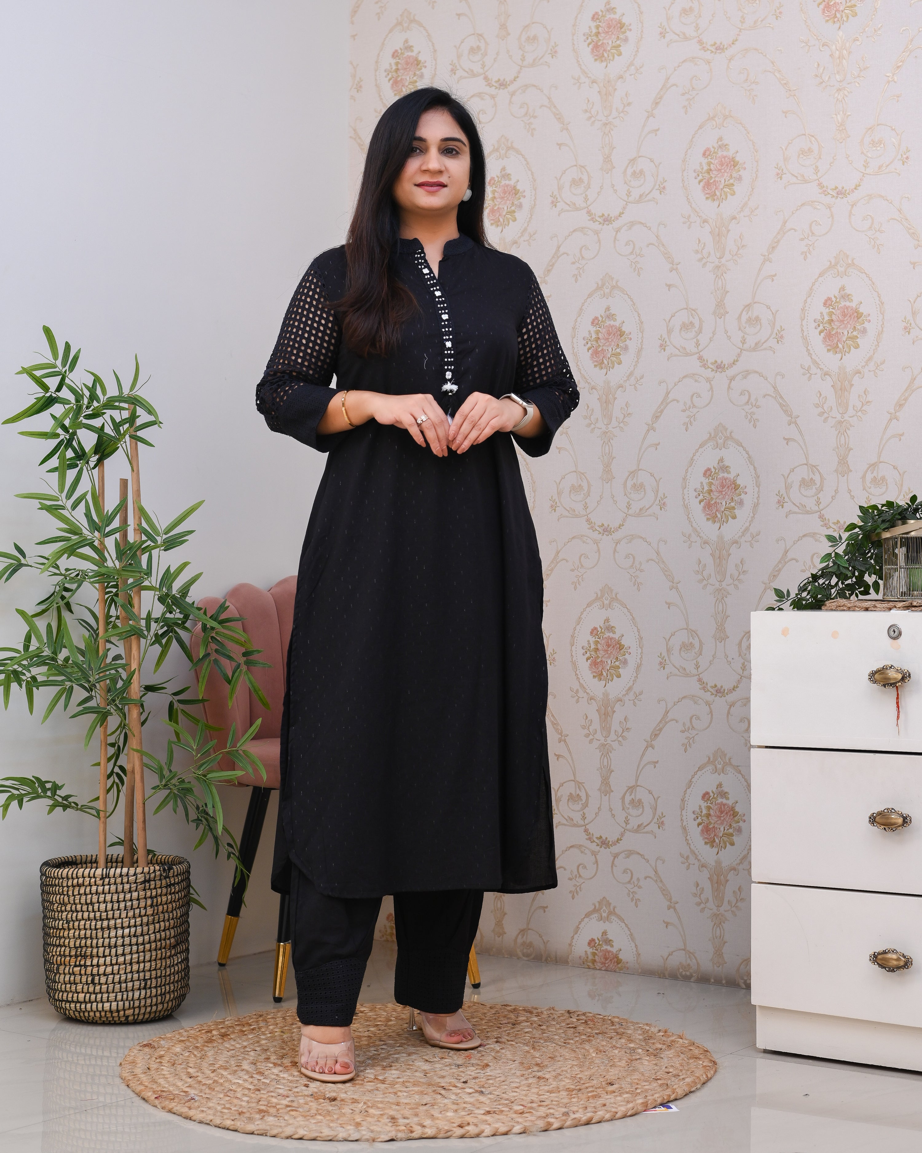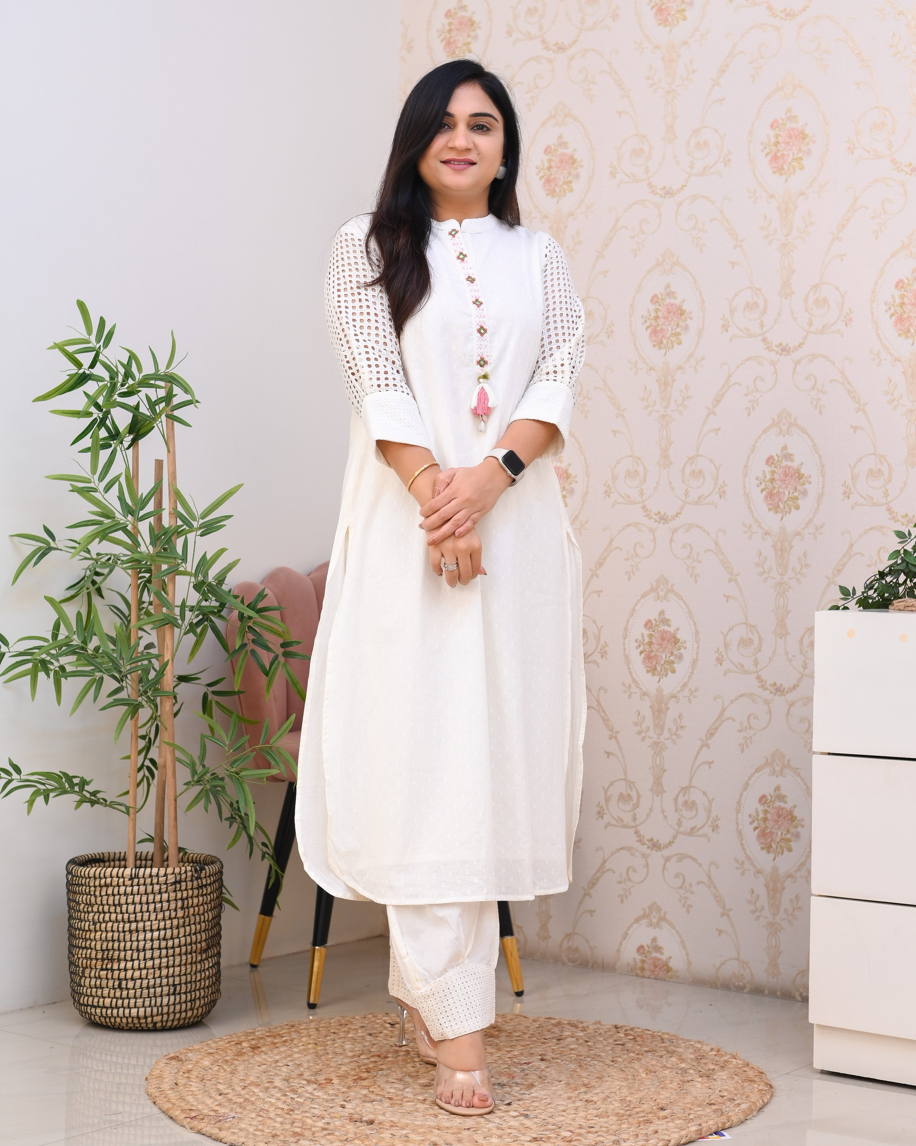 Cotton Straight HandEmbroidered Sciffili Pant Set