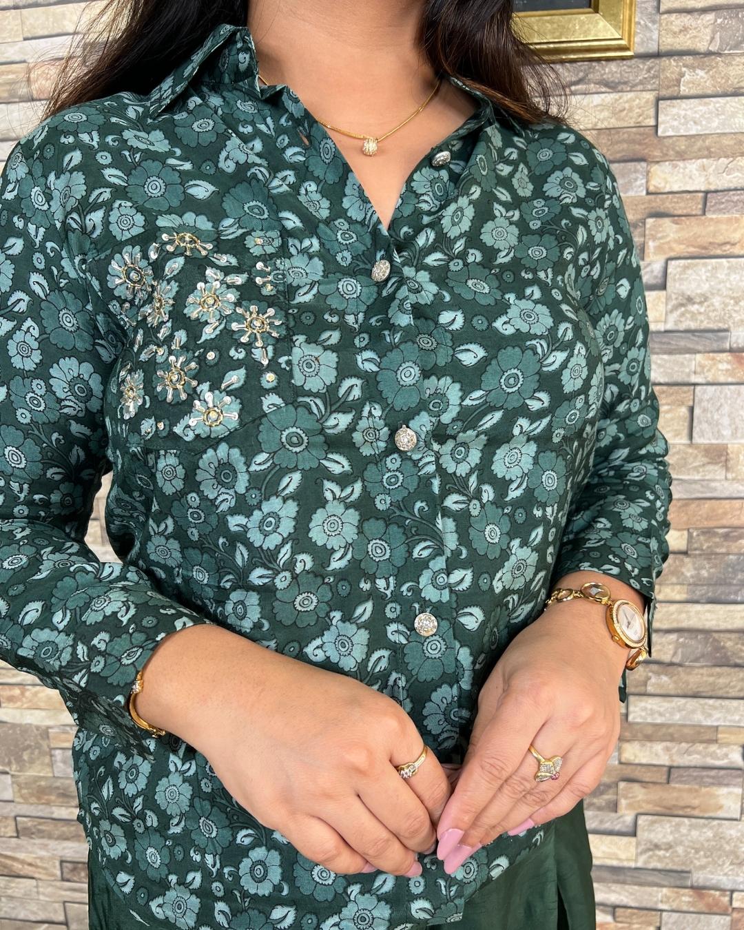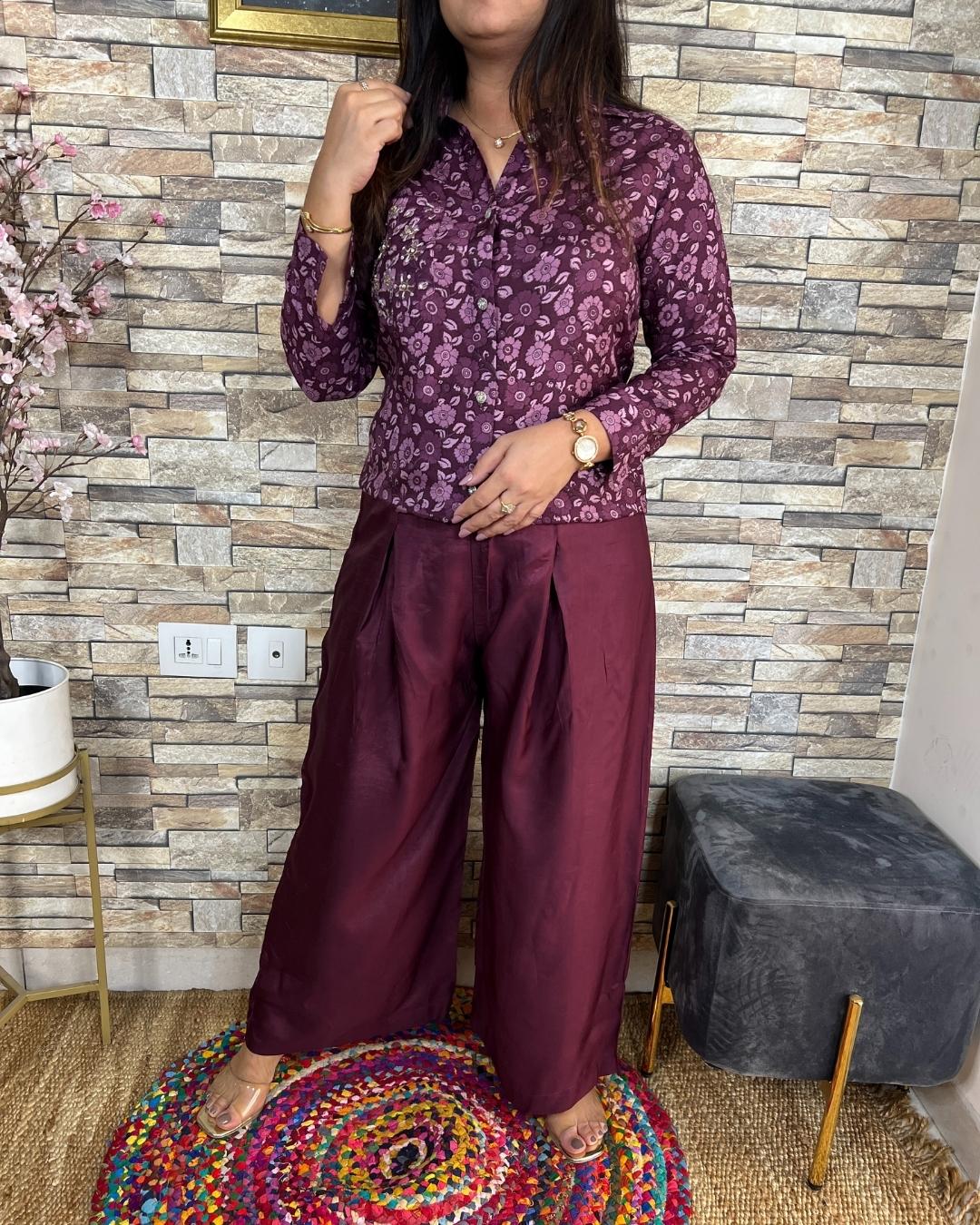 Eliva Musin Embroidered Shirt and Plazo Coord Set