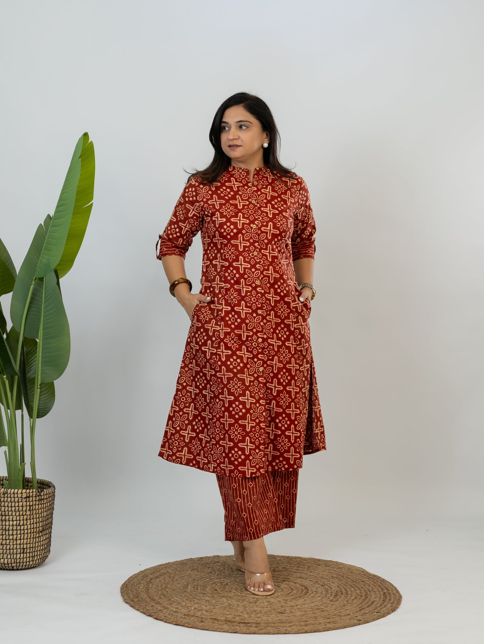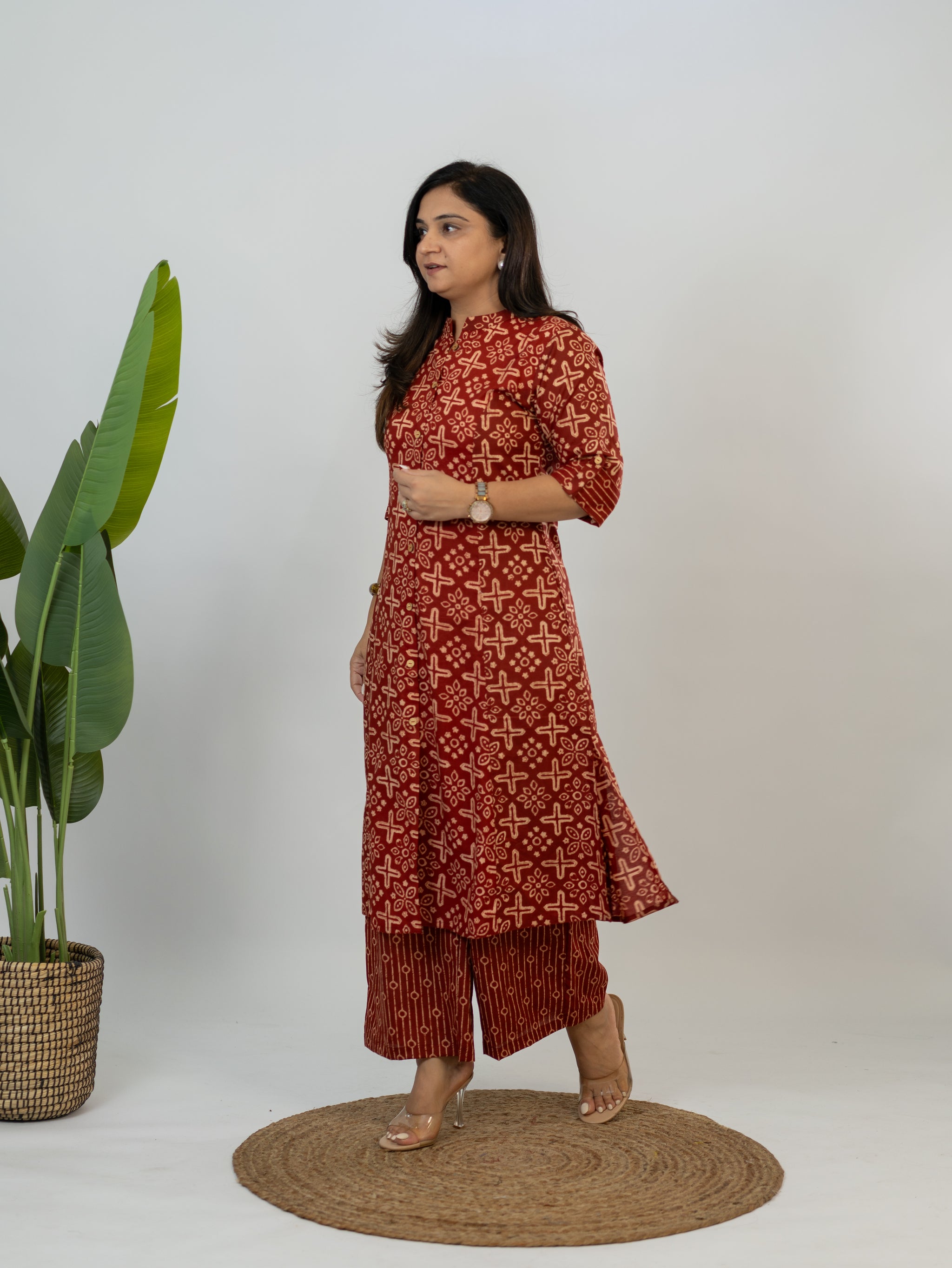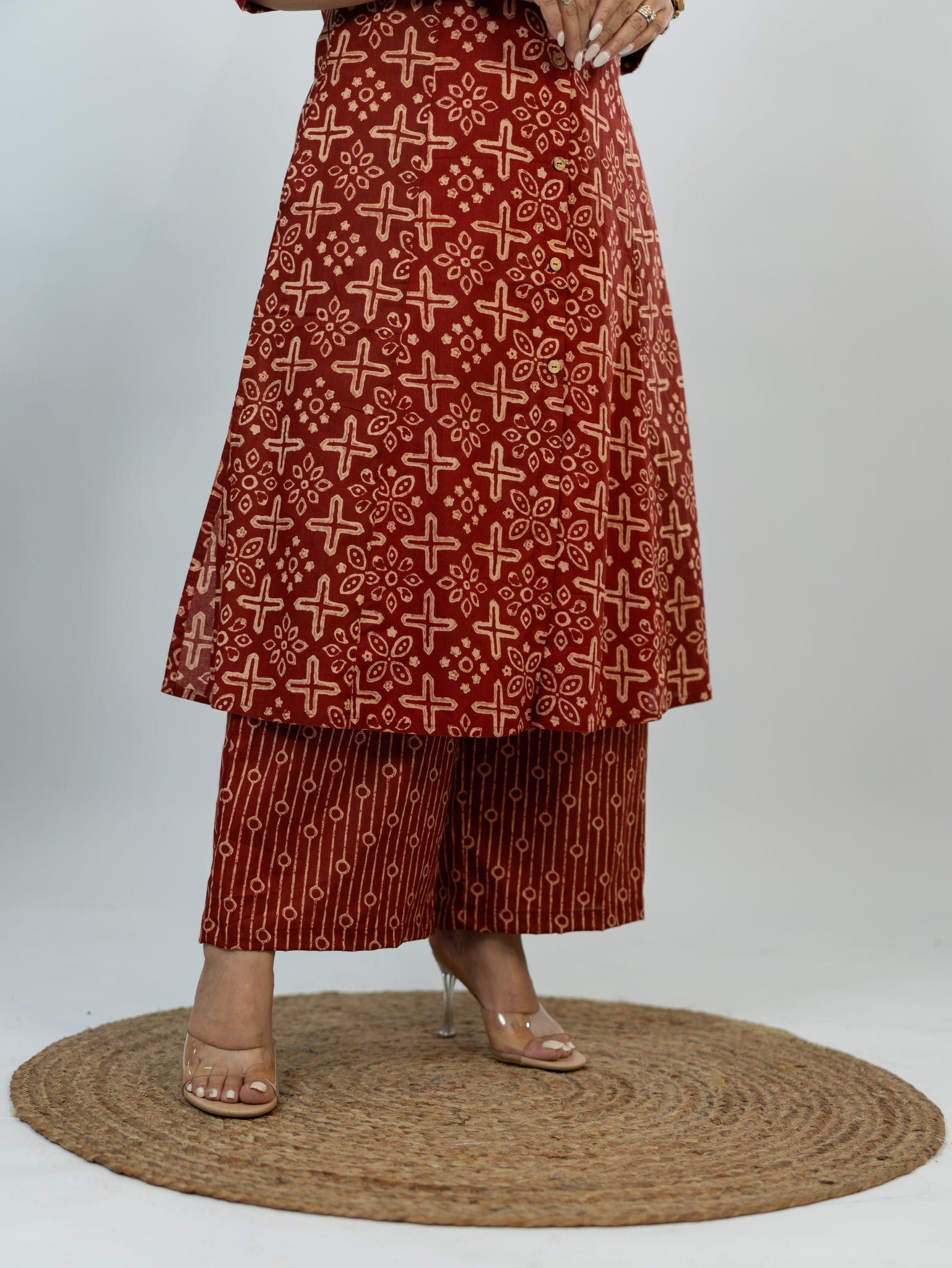 Elevate your office style effortlessly with our Office Wear Cotton Co-ord Set. Crafted for comfort and sophistication, this set features convenient side pockets and loose-fitting palazzo pants for freedom of movement. Slip into all-day comfort and conquer your workday with confidence. Discover the perfect blend of professionalism and comfort today!