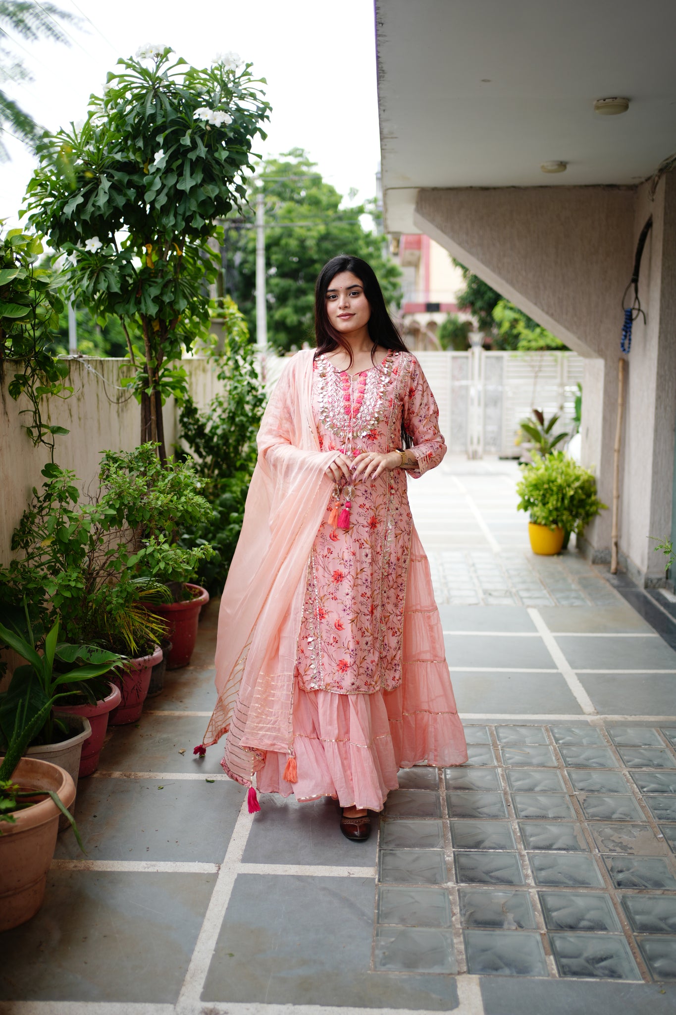 Bring charm and comfort together with this beautiful muslin kurta paired with an attached mul cotton skirt. The muslin gives a soft, flowy look, while the mul cotton skirt feels airy, light, and super comfortable.