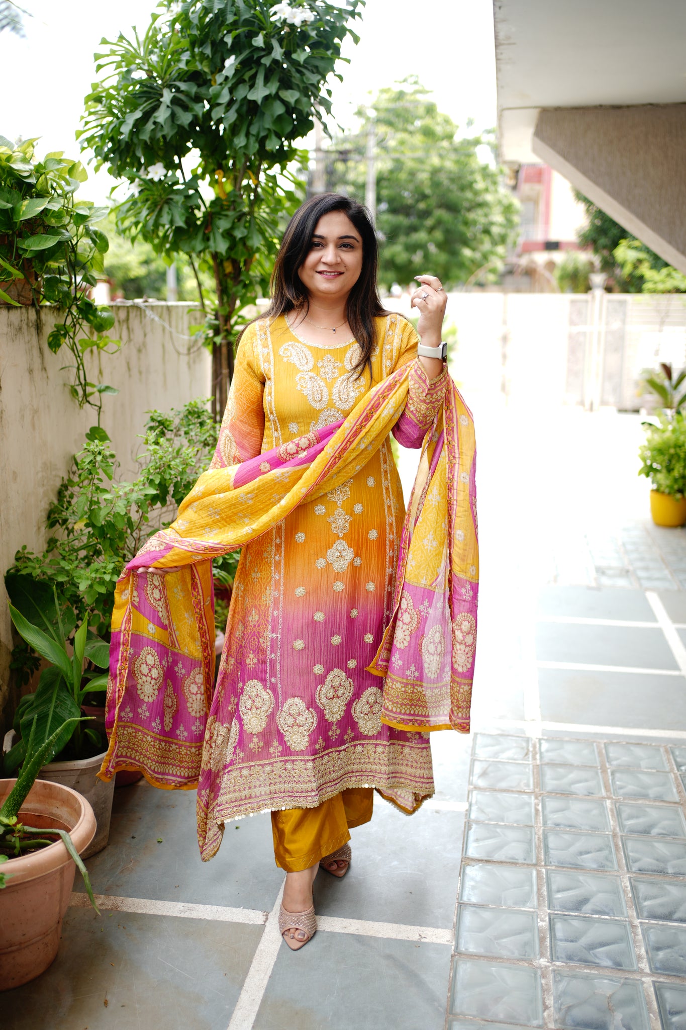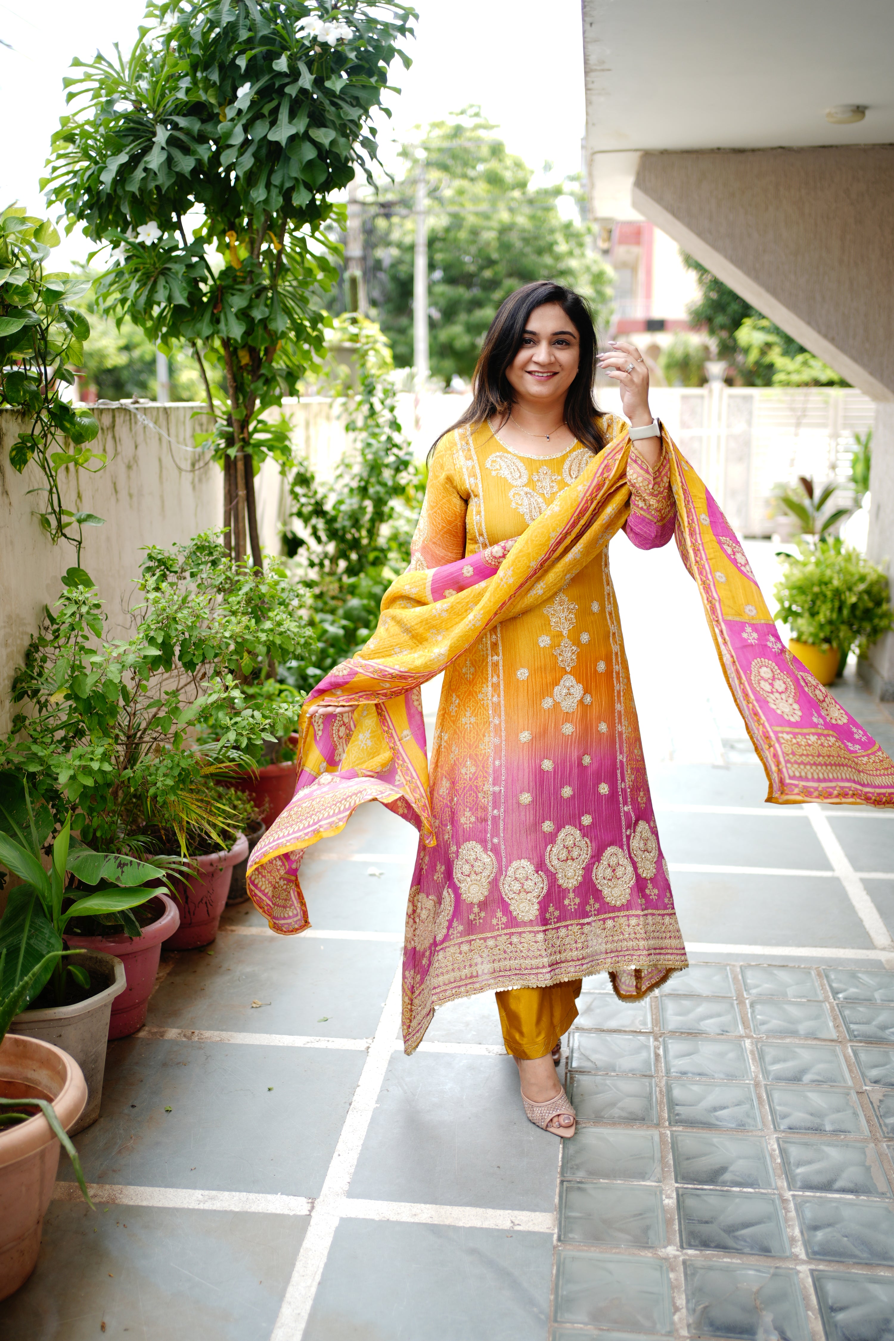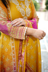 Upgrade your festival wardrobe with our stunning Noor Tissue Shimmer Embroidered Pant set. The top features beautiful hand embroidery that will elevate your fashion game and make you the center of attention . Matched with a matching dupatta, this set combines luxury and traditional bandhani print for a show-stopping look.