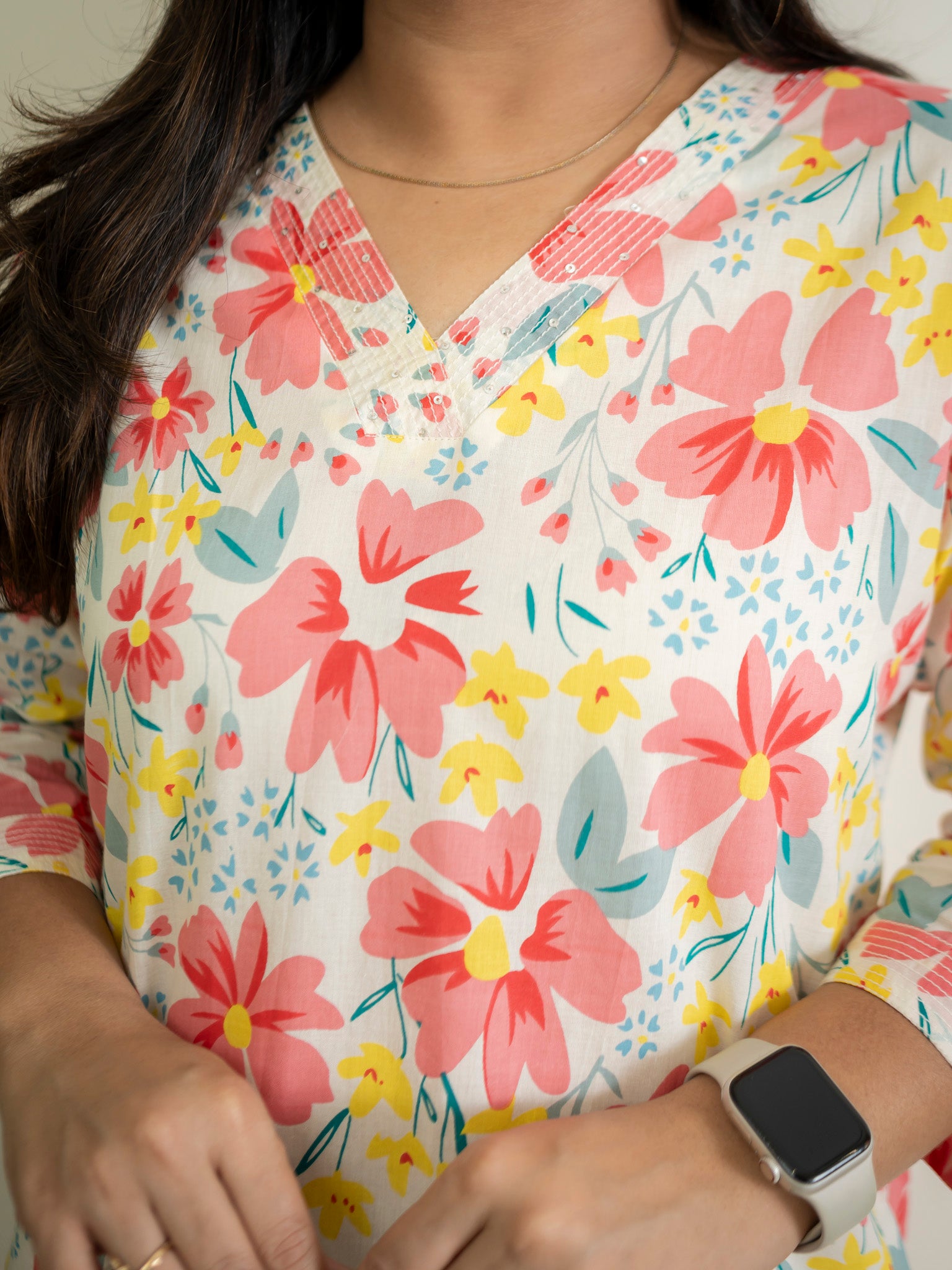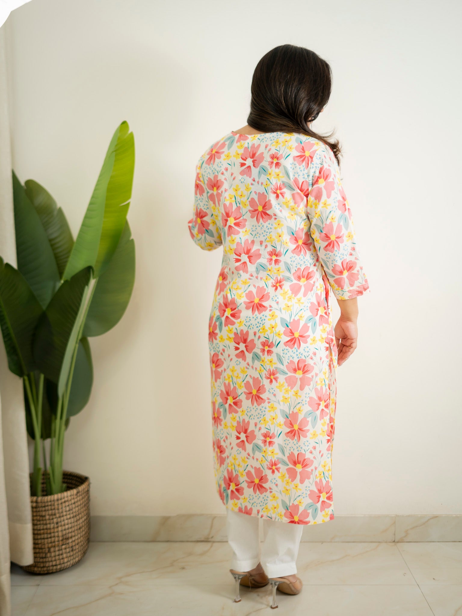 White MultiColor Flower Cotton Casual Straight Kurta