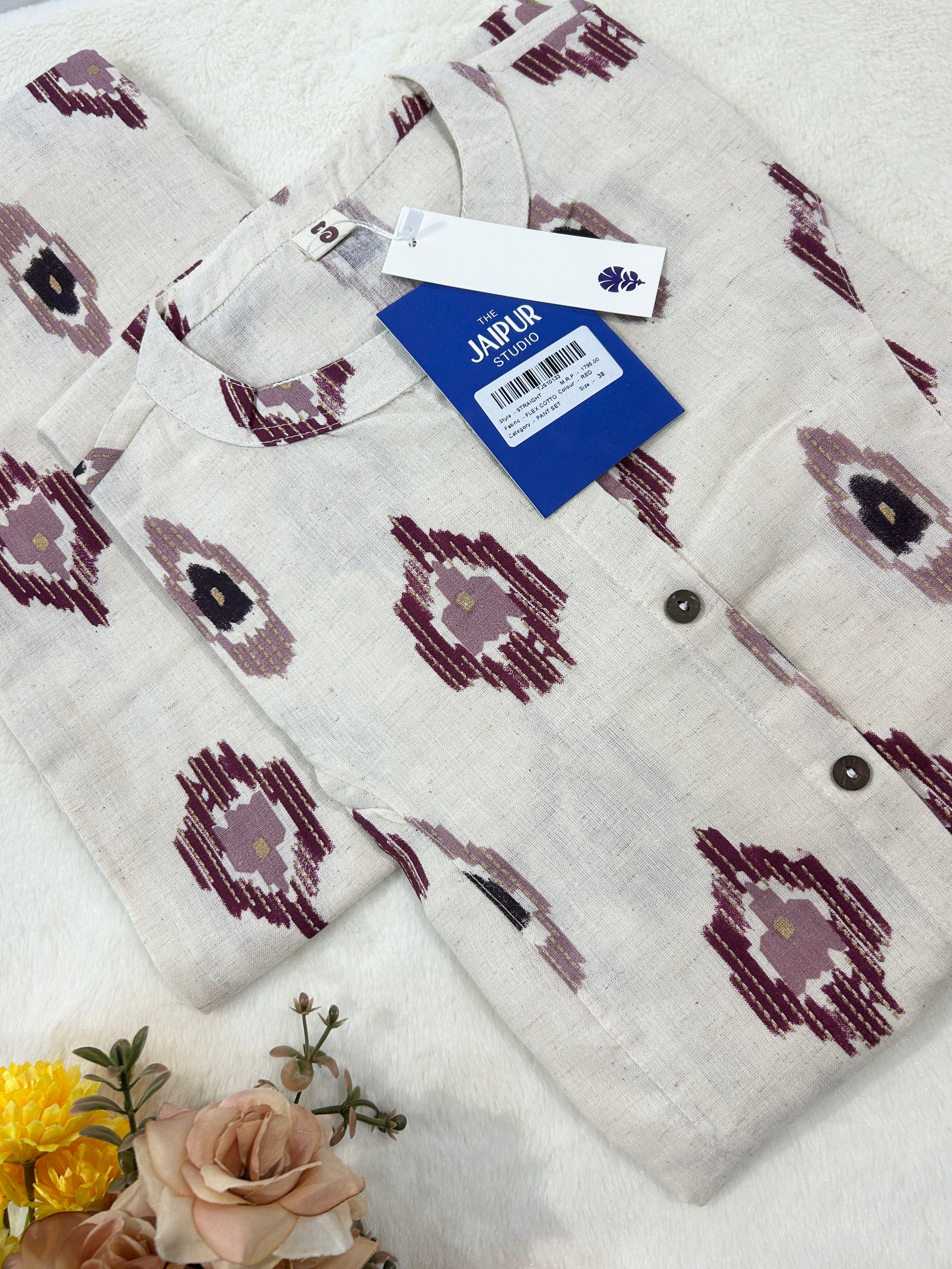 Offwhite Ikkat Cotton A-line Coord Set