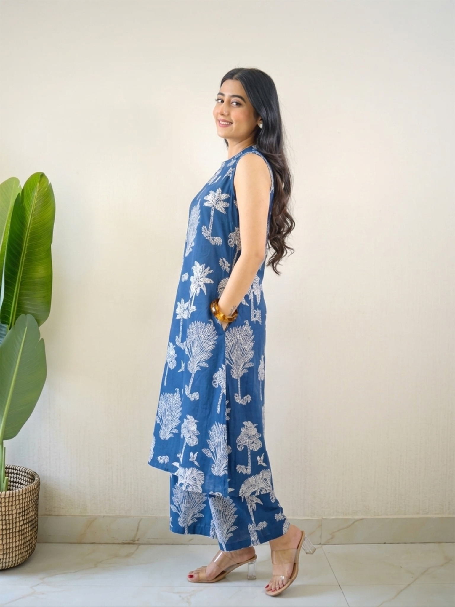Raahi Blue Floral Rayon A-line Coord Set