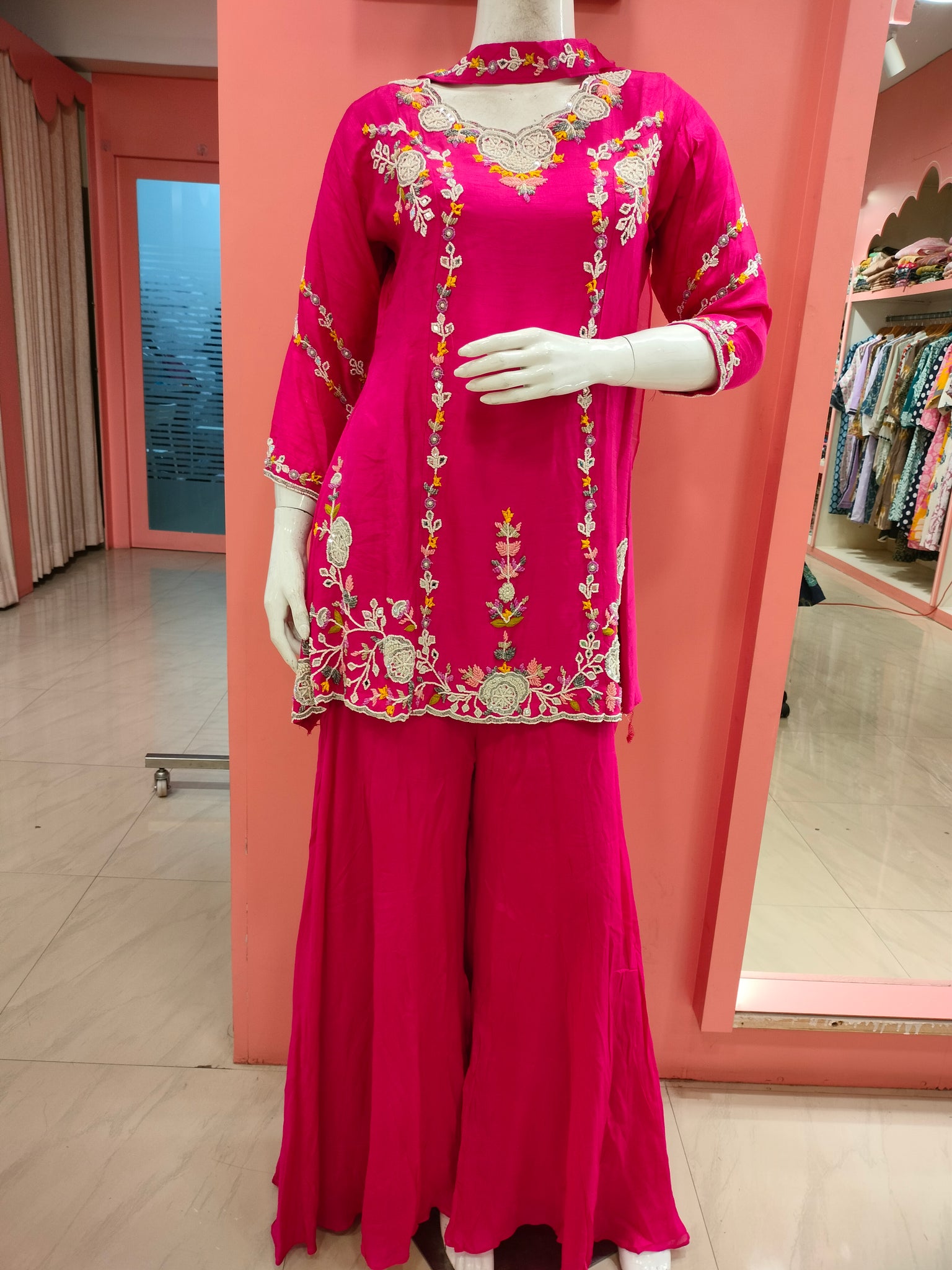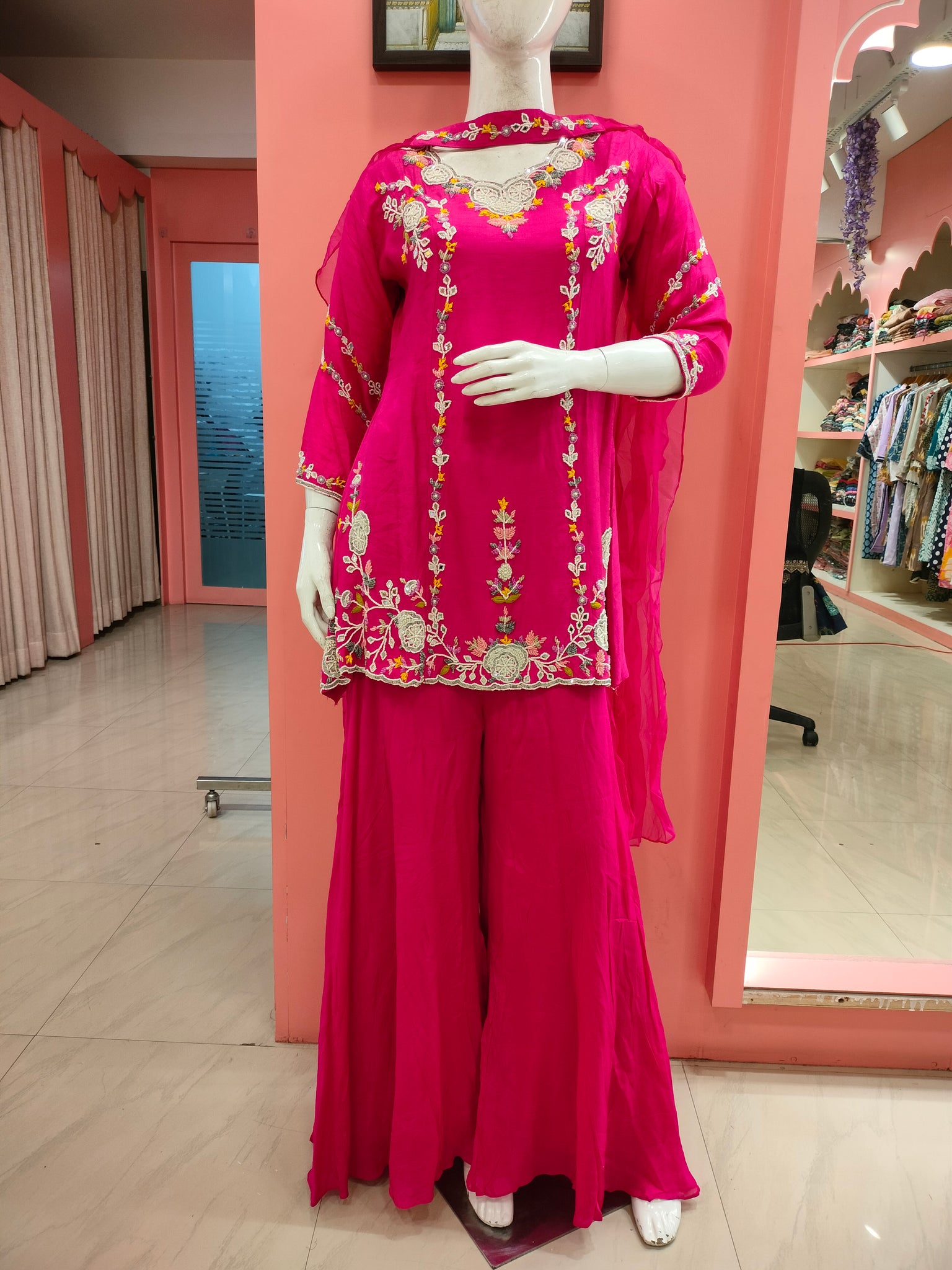 ‘Zainit’ Silk Hand Embroidered Sharara Set - The Jaipur Studio