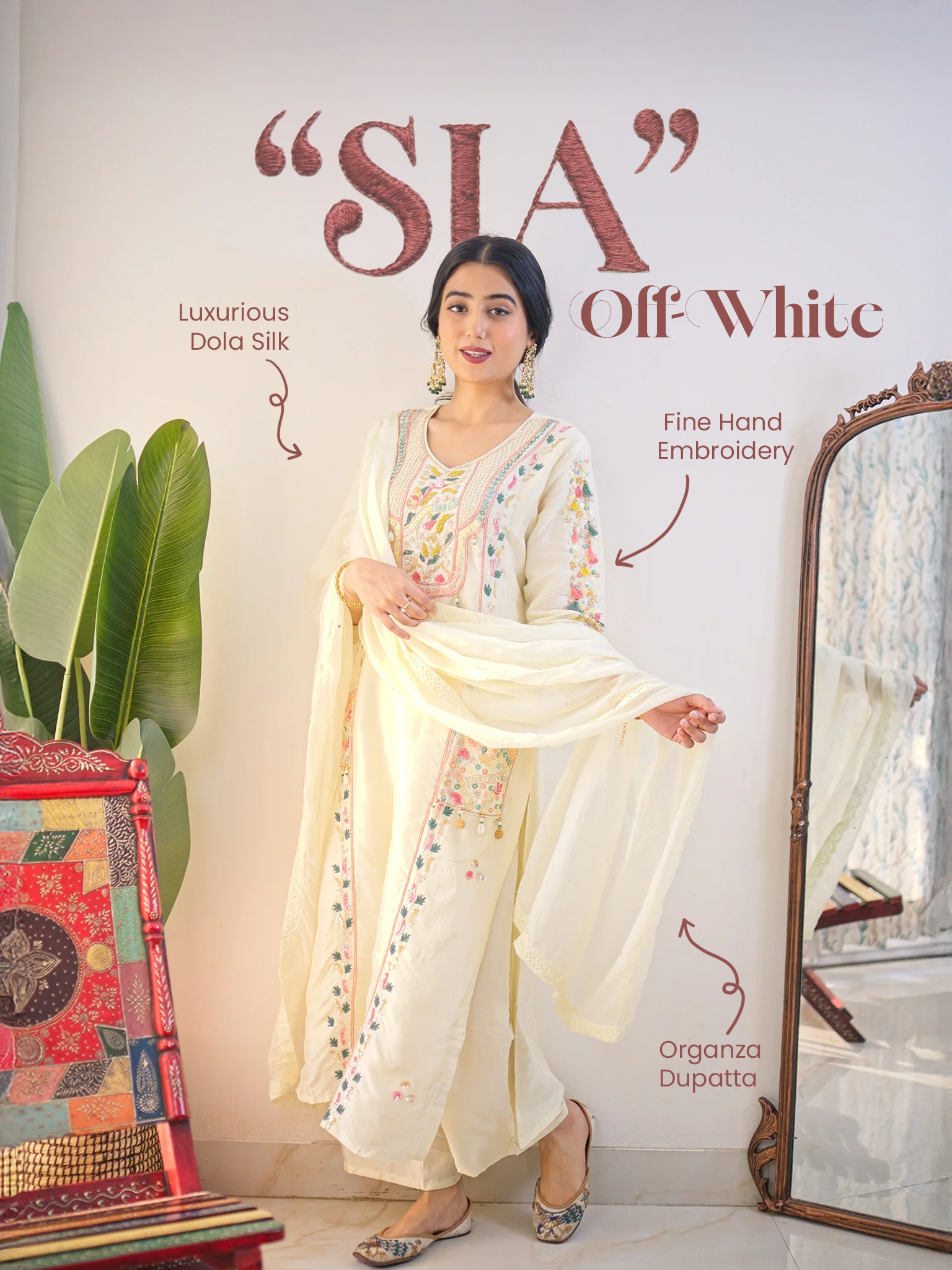 Sia offwhite Silk Festive HandEmbroidered Pant Set