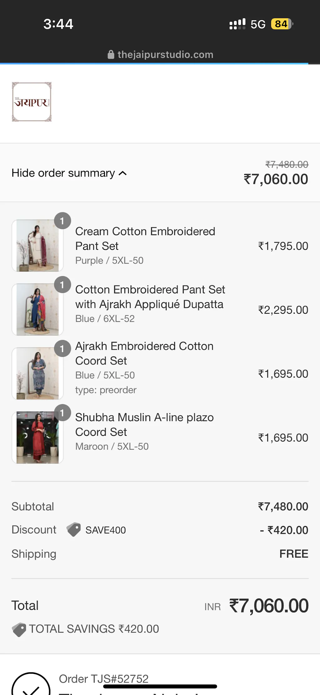 You can track your order here. If your enquiry is urgent, please email us at care@thejaipurstudio.com and one of our team members will be in touch with you at the earliest.