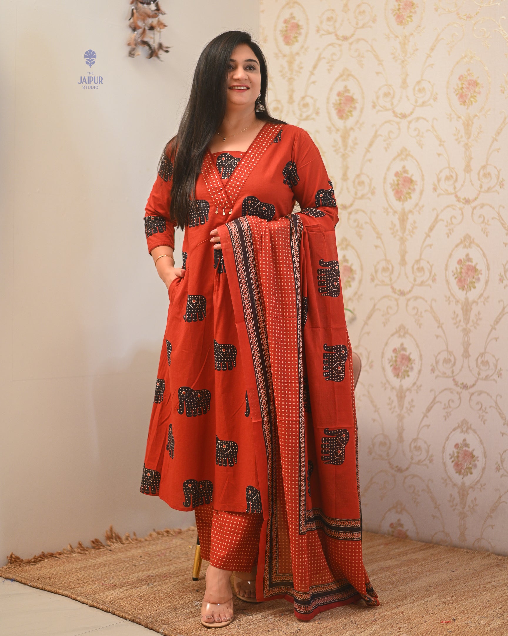 Make a statement this season with our Premium Cotton Handwork Detailed Pant Set—a perfect blend of elegance and comfort. Crafted from luxurious premium cotton, this set features intricate gotta detailing that adds a touch of festive charm. Complete with matching pants and a dupatta, it’s a timeless outfit for effortless sophistication.