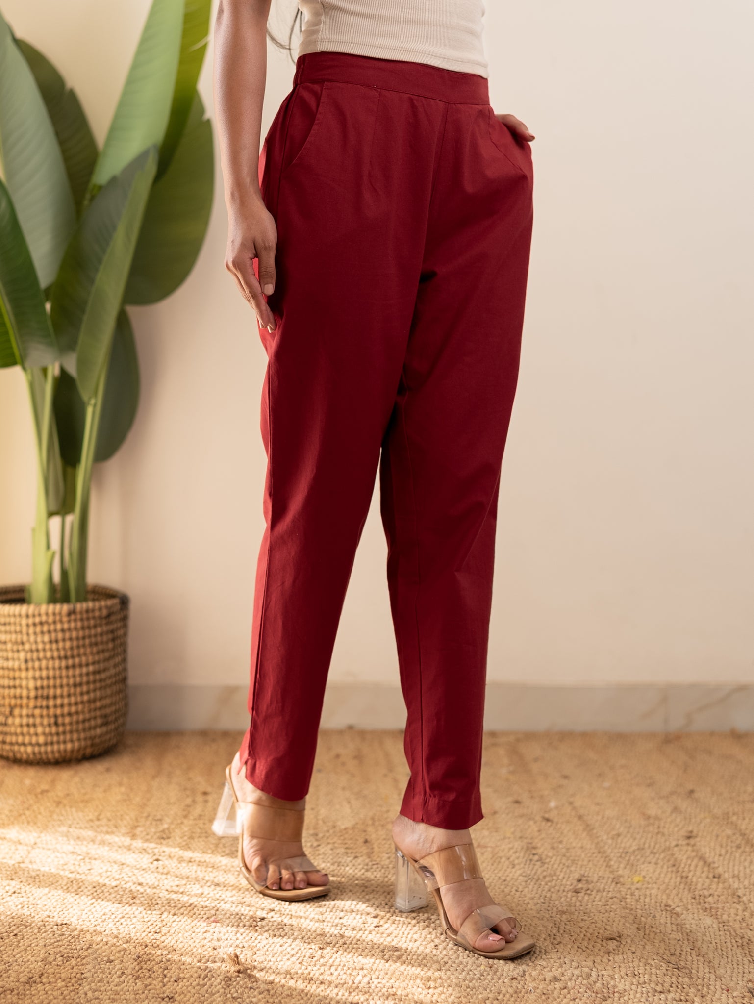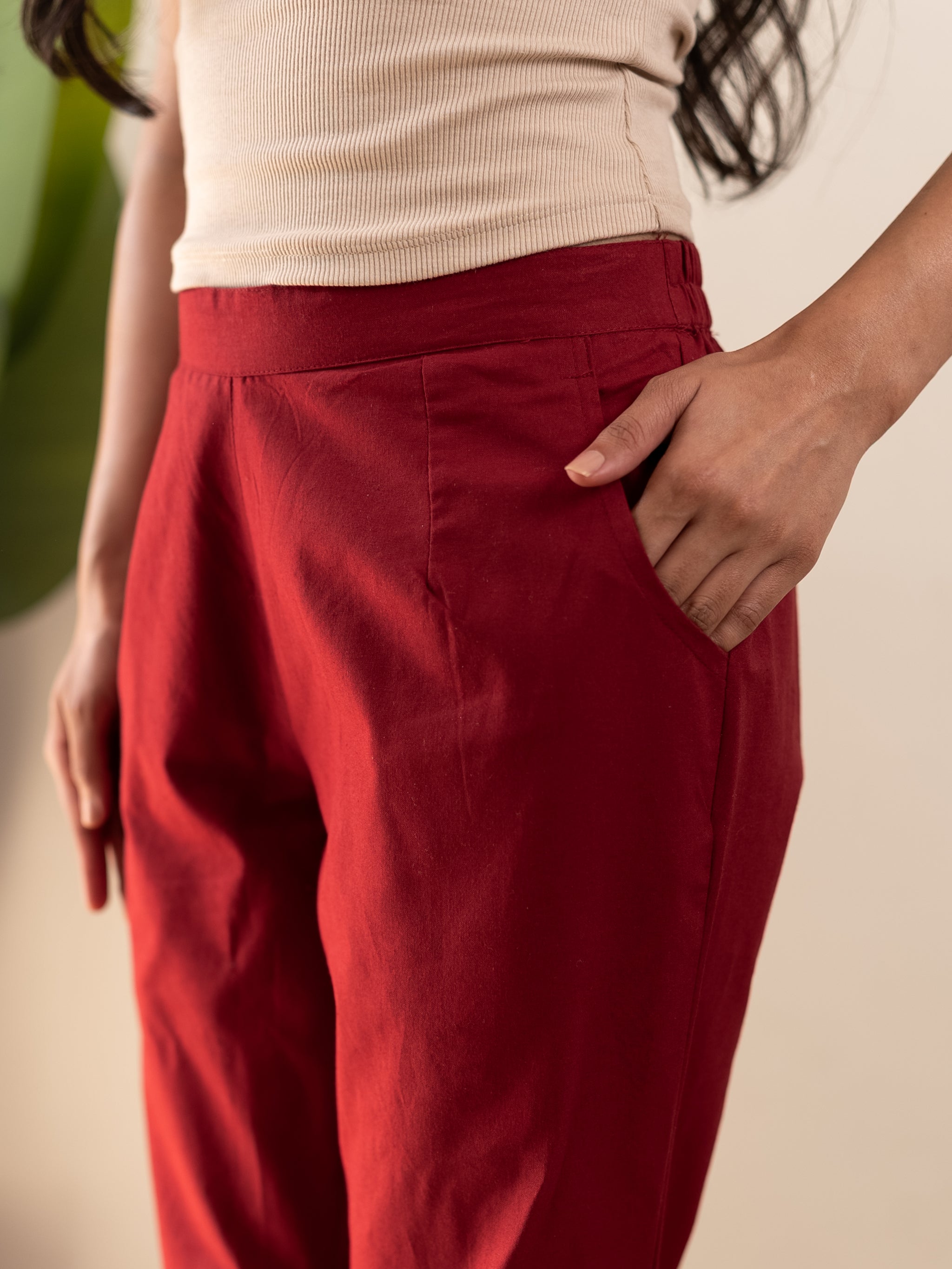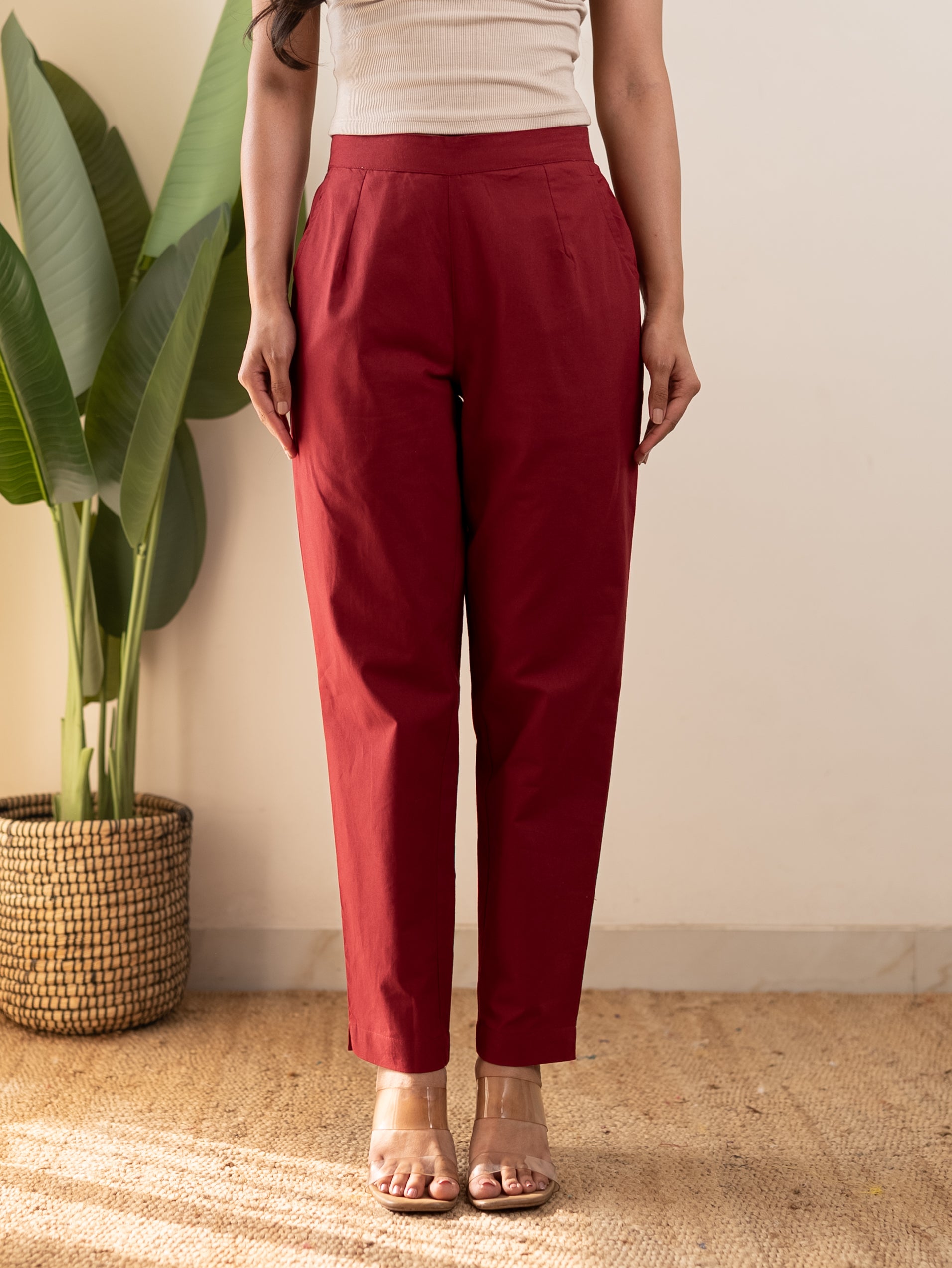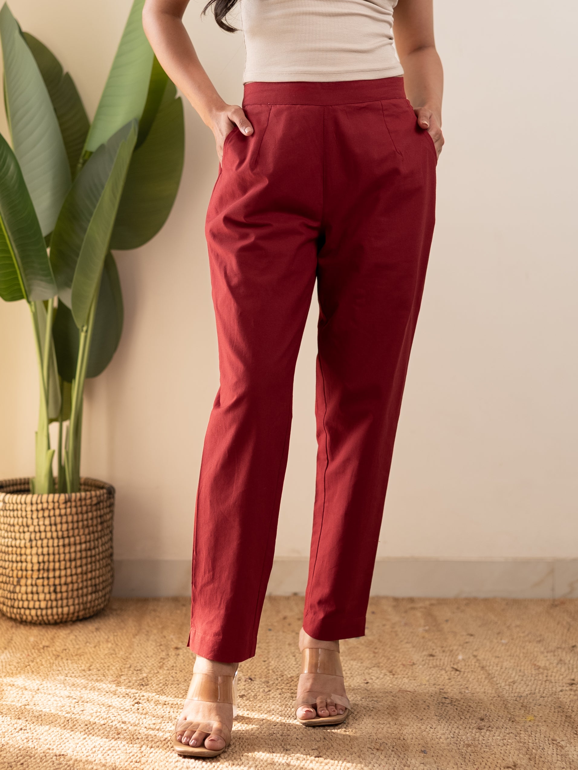 All-Day Cotton Straight Pant for Women-Maroon