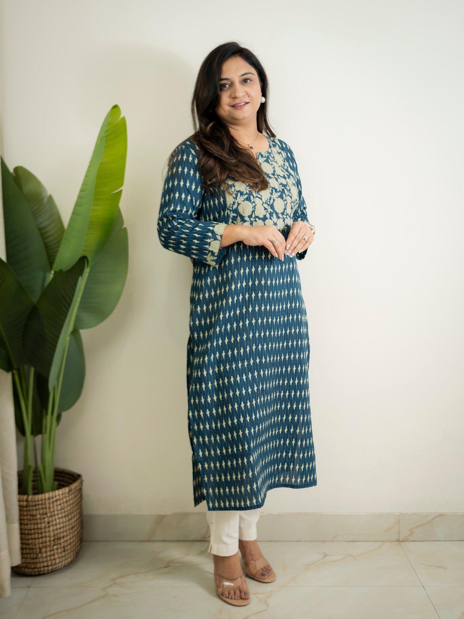 Blue Katha floral Cotton Casual Straight Kurta