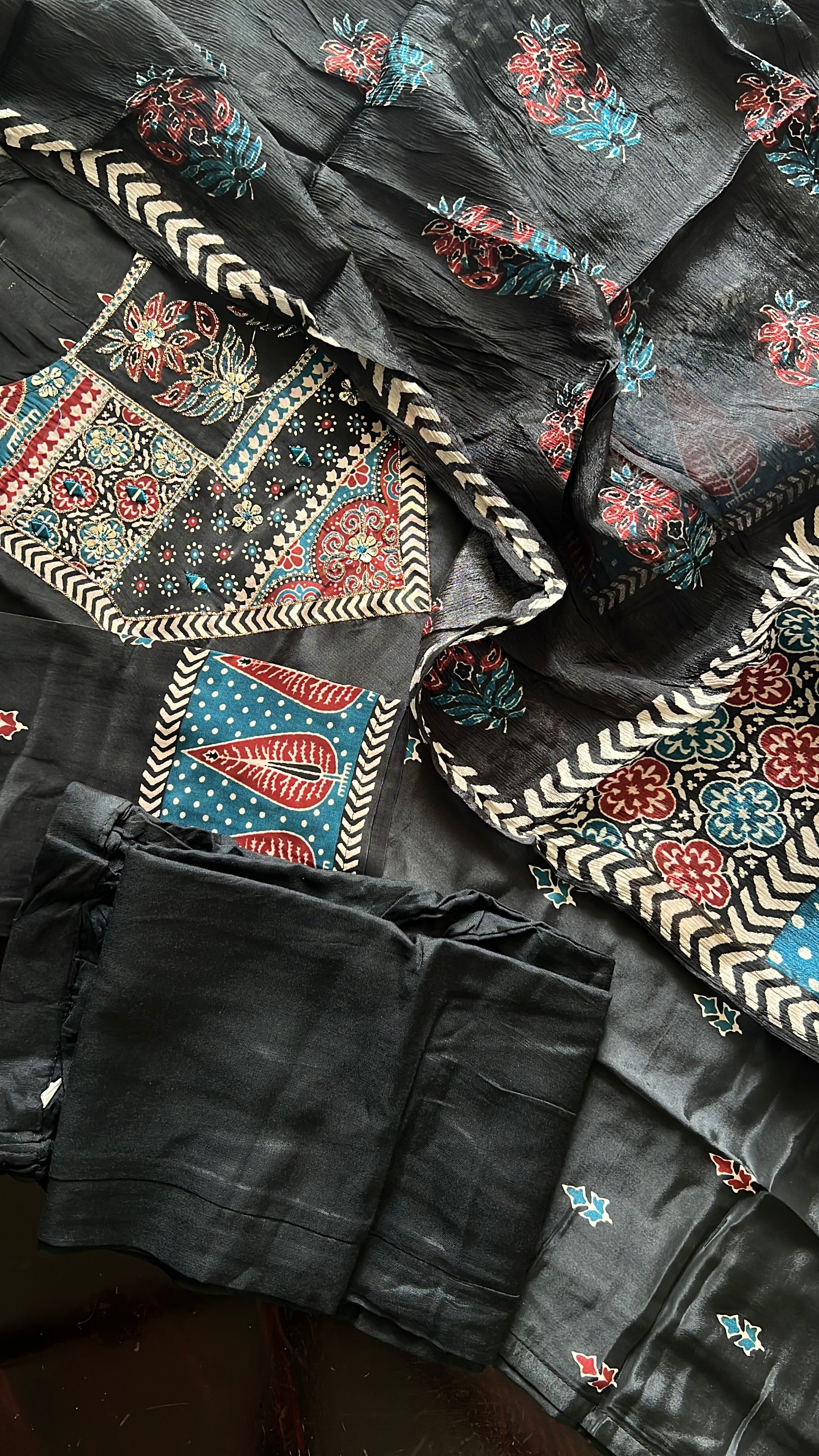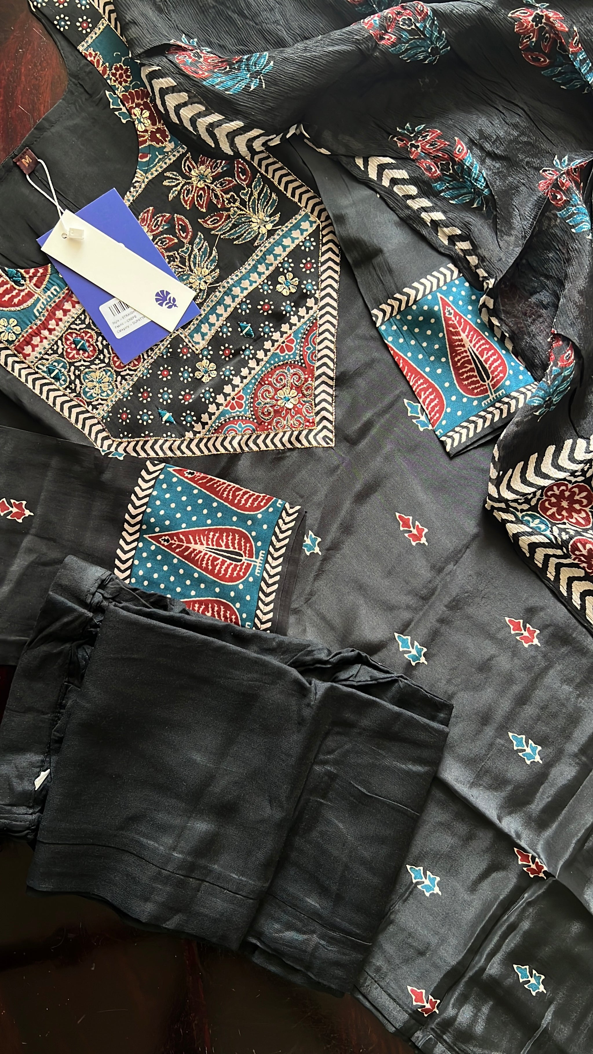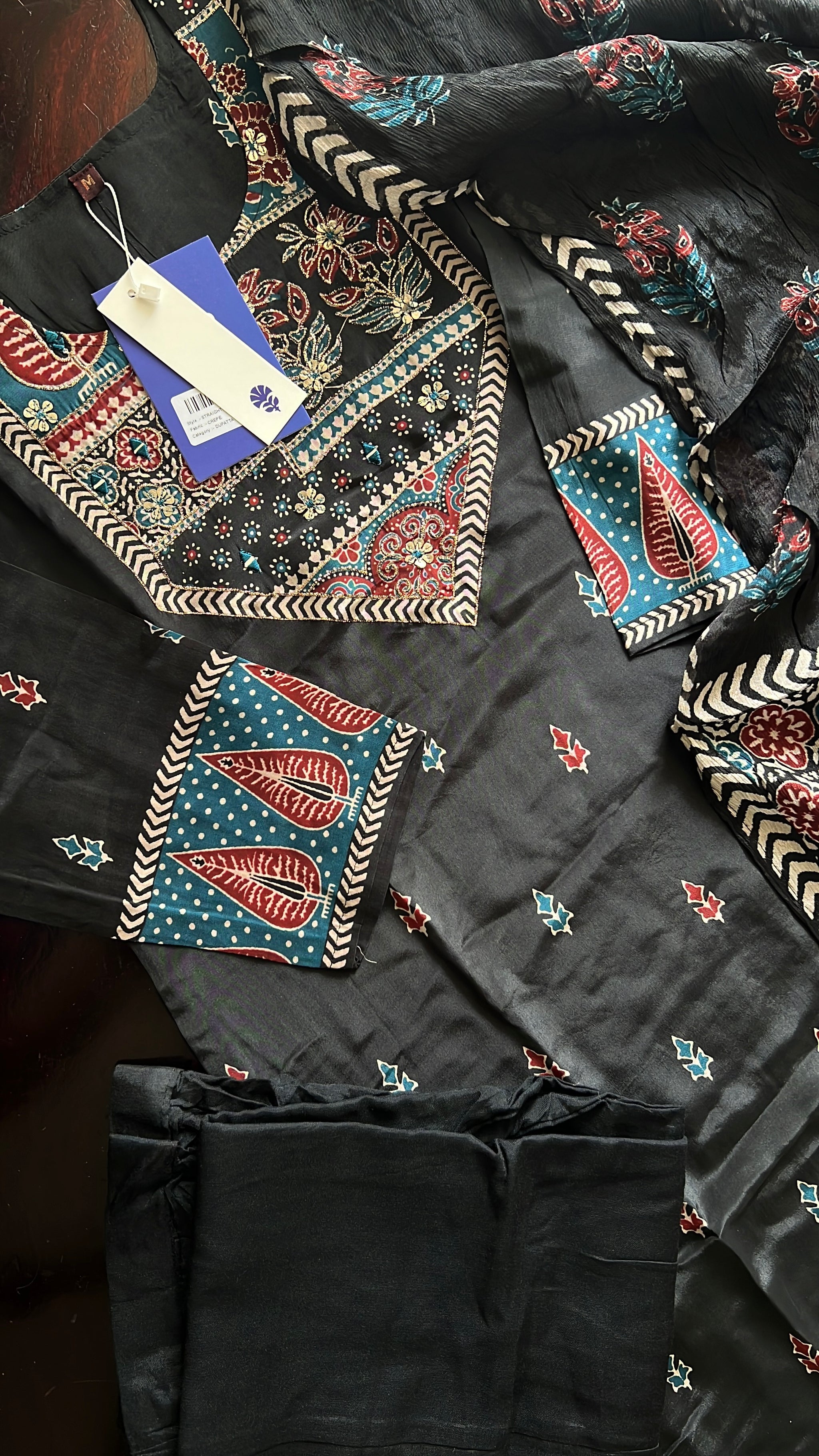 Dhara Ajrakh Crepe HandDetailed Pant Set