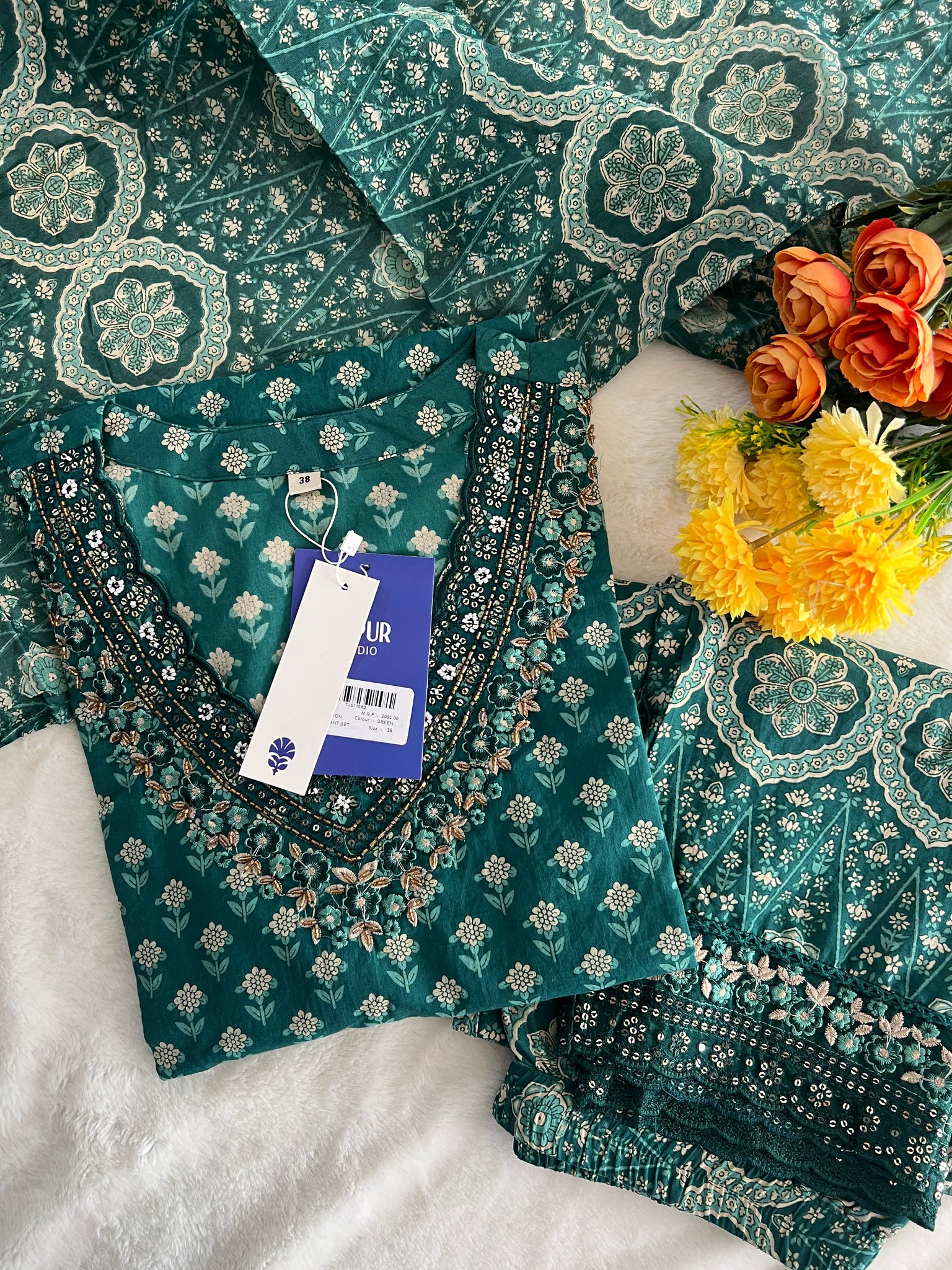 Dimpee Ajrakh Cotton HandEmbroidered Pant set