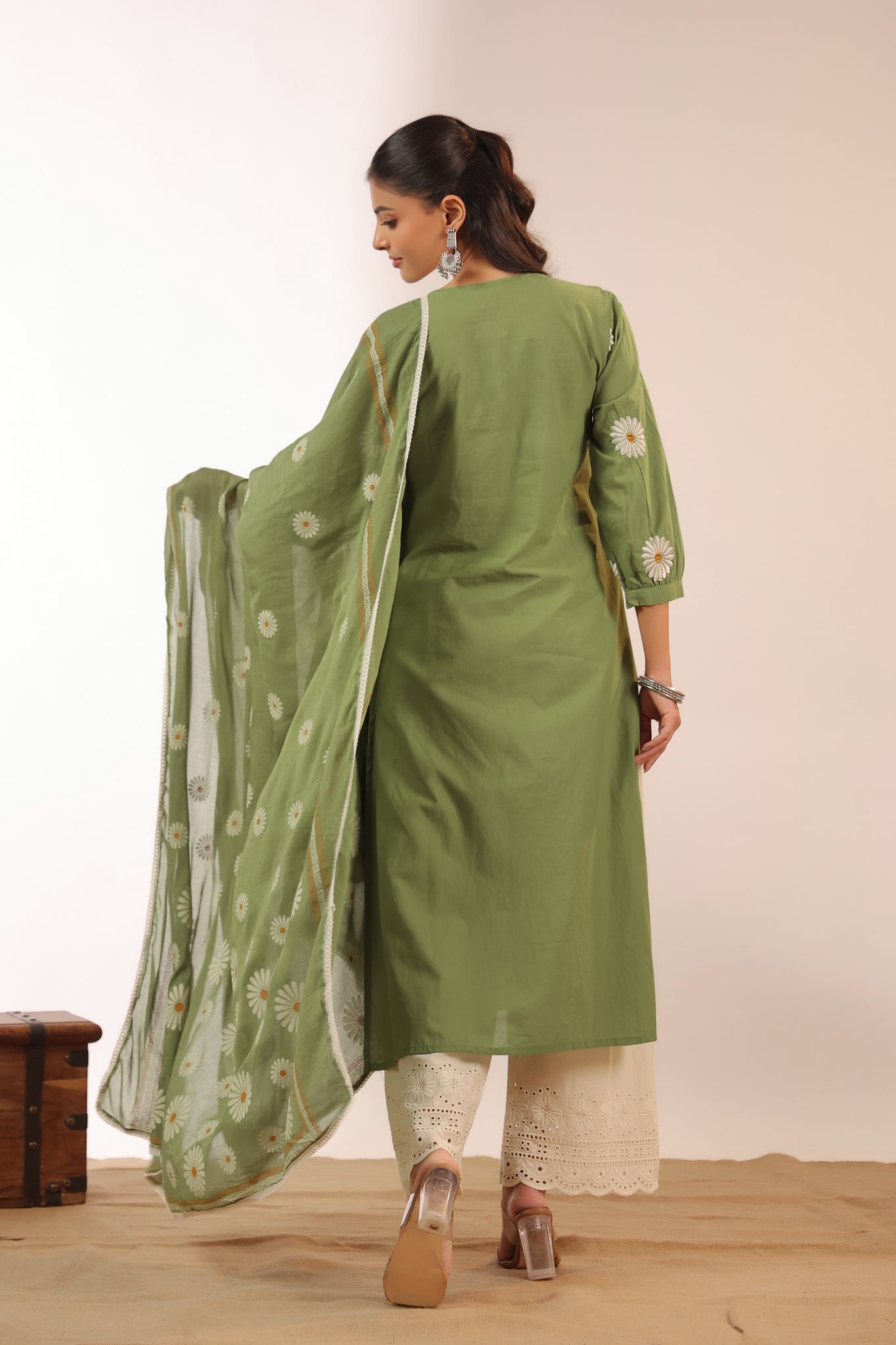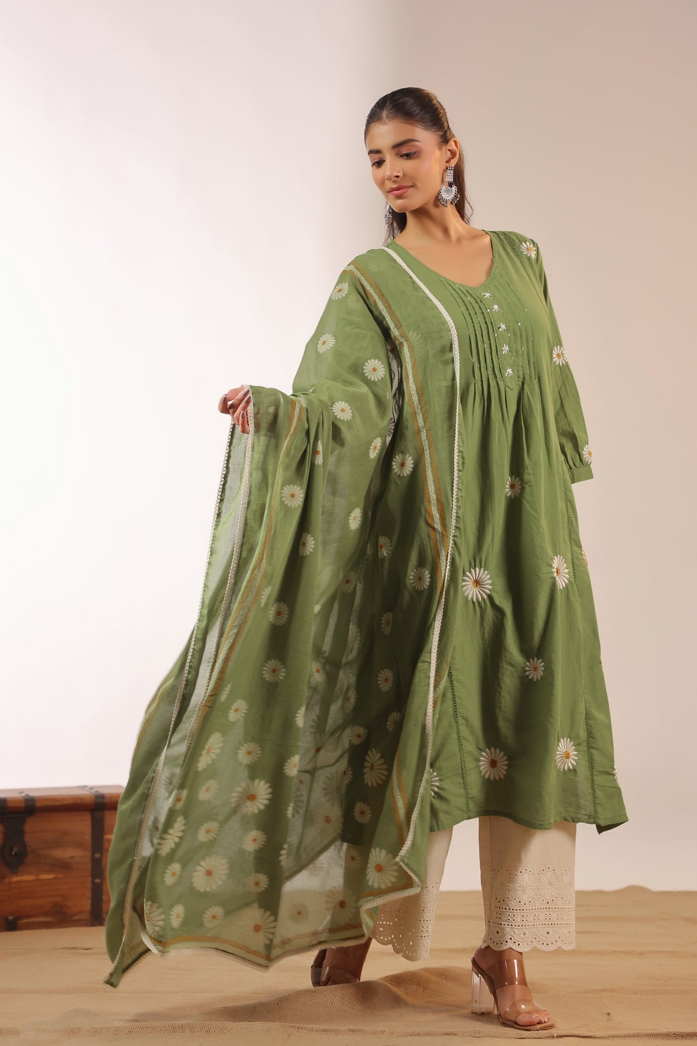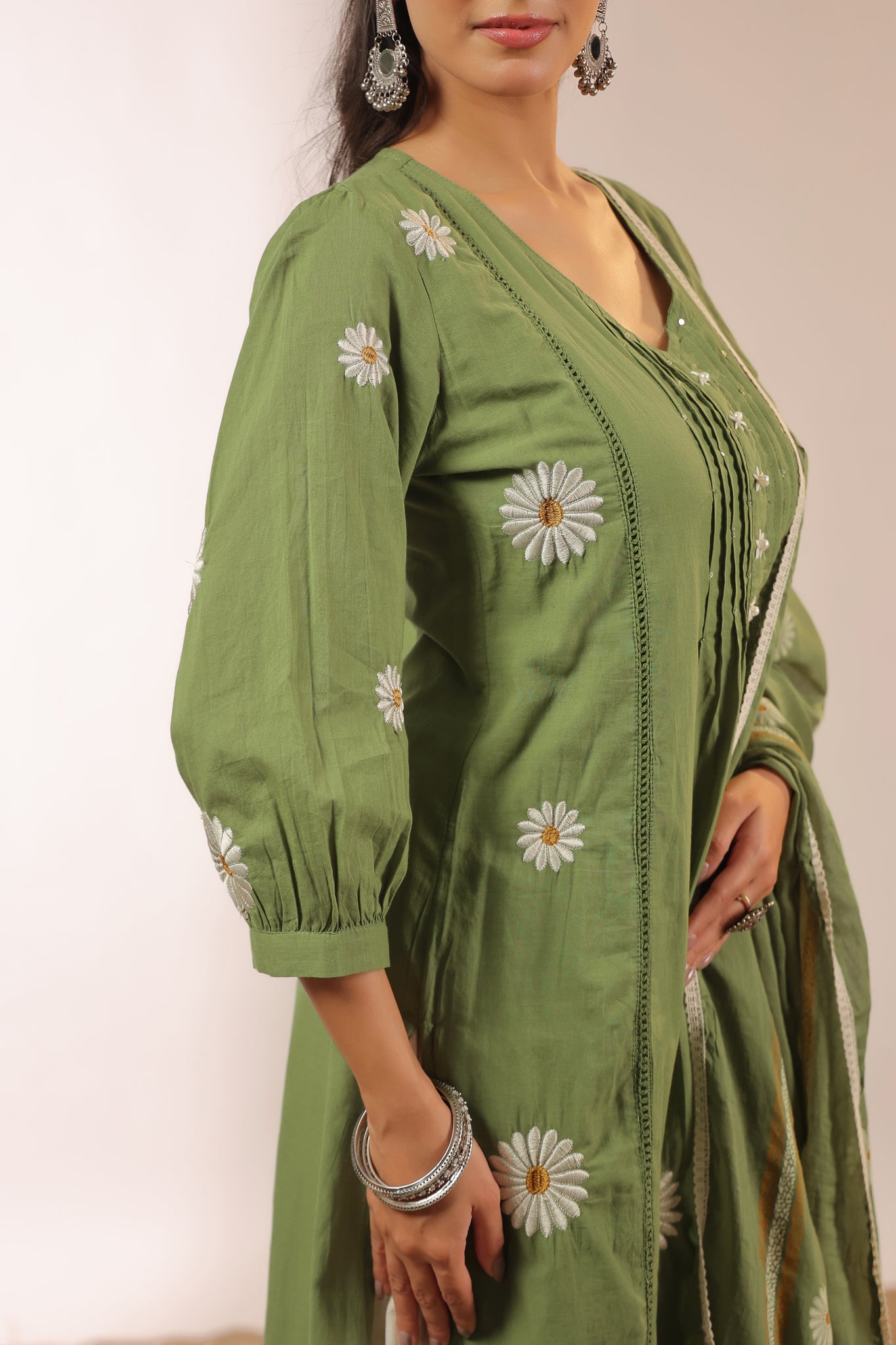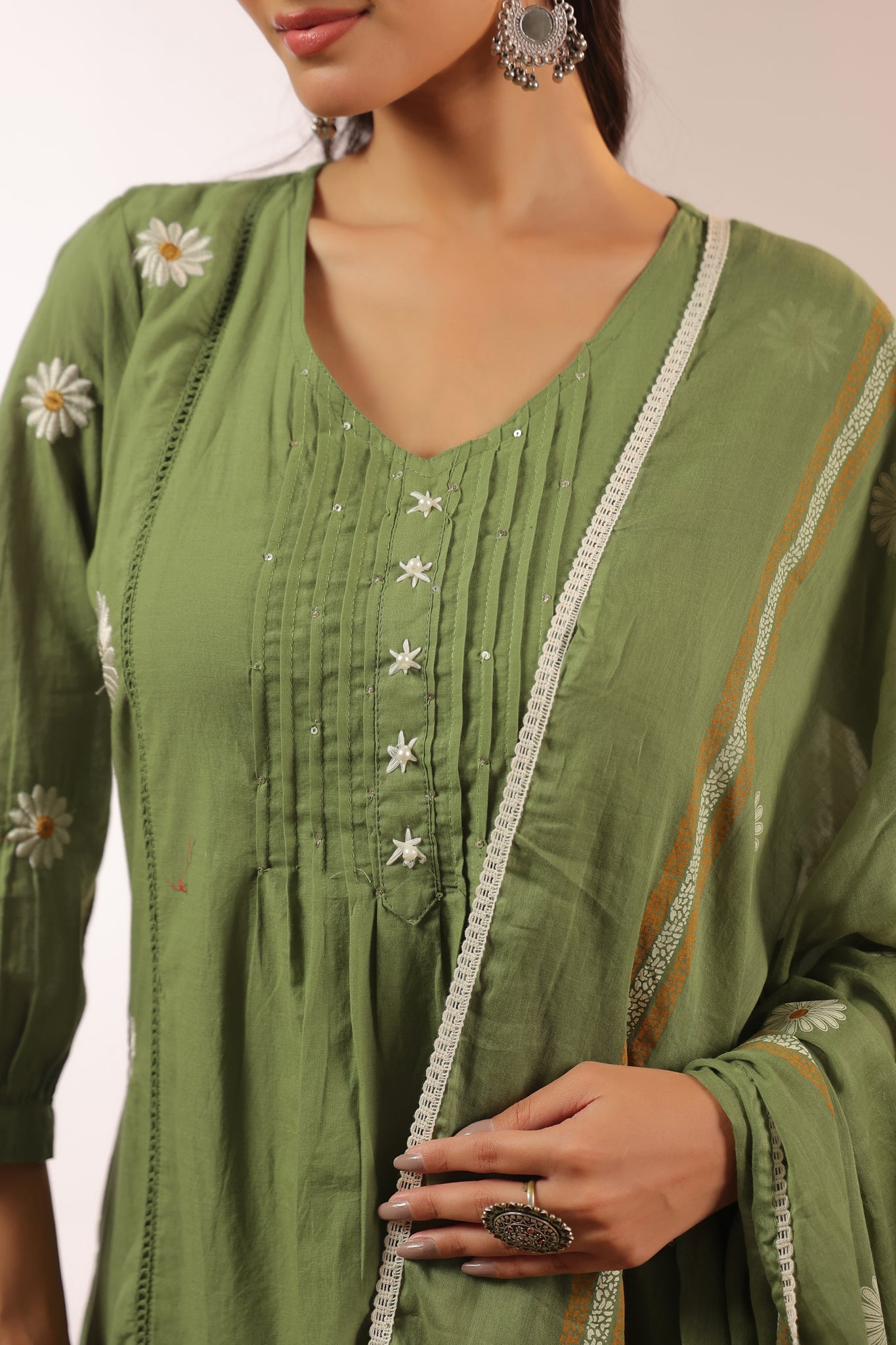Add some flair to your office festivities with our Hand Detailed Cotton A-line Pant Set! This beautiful set features a unique Denim Look kurta. Work never looked so good!
