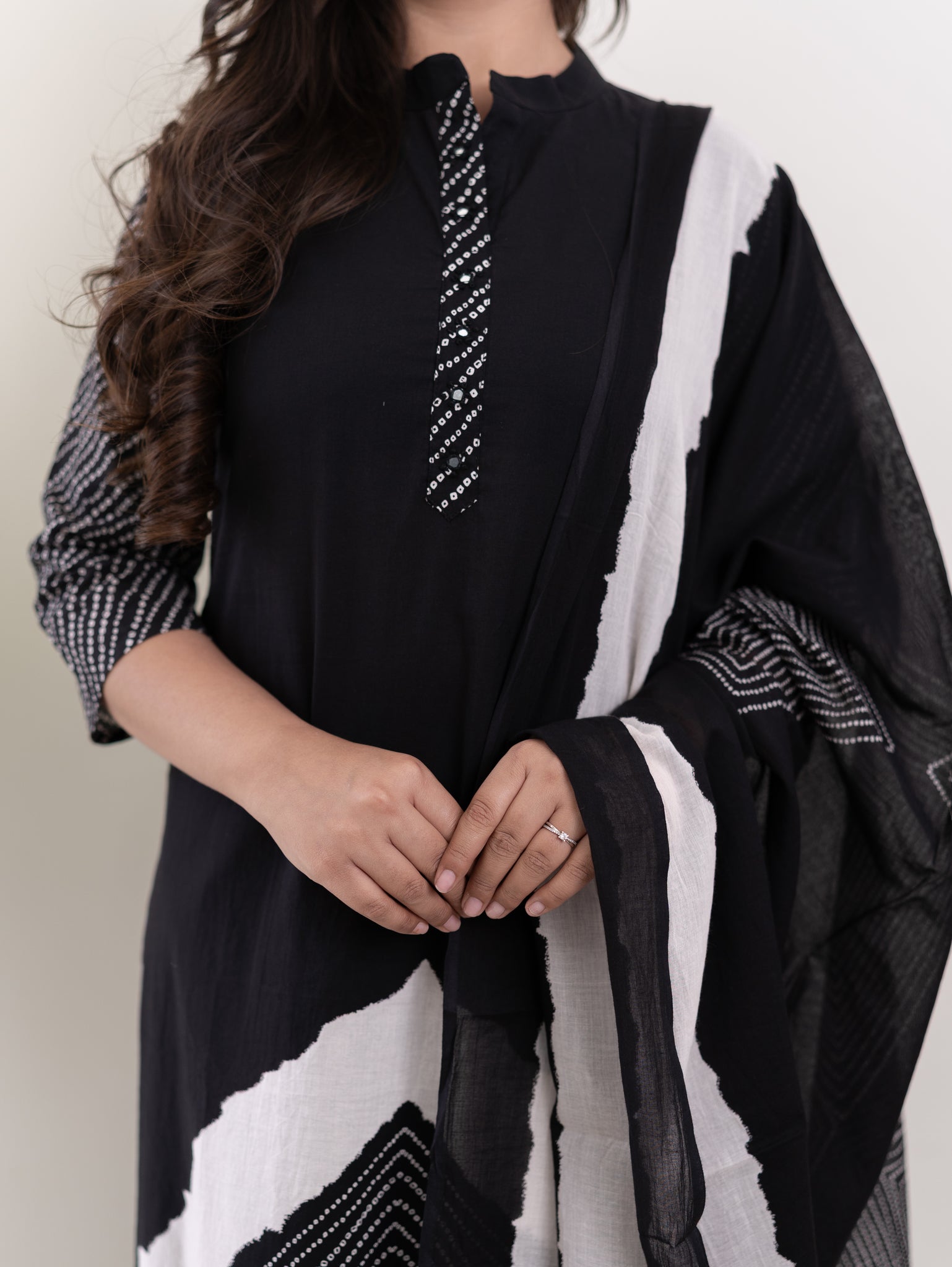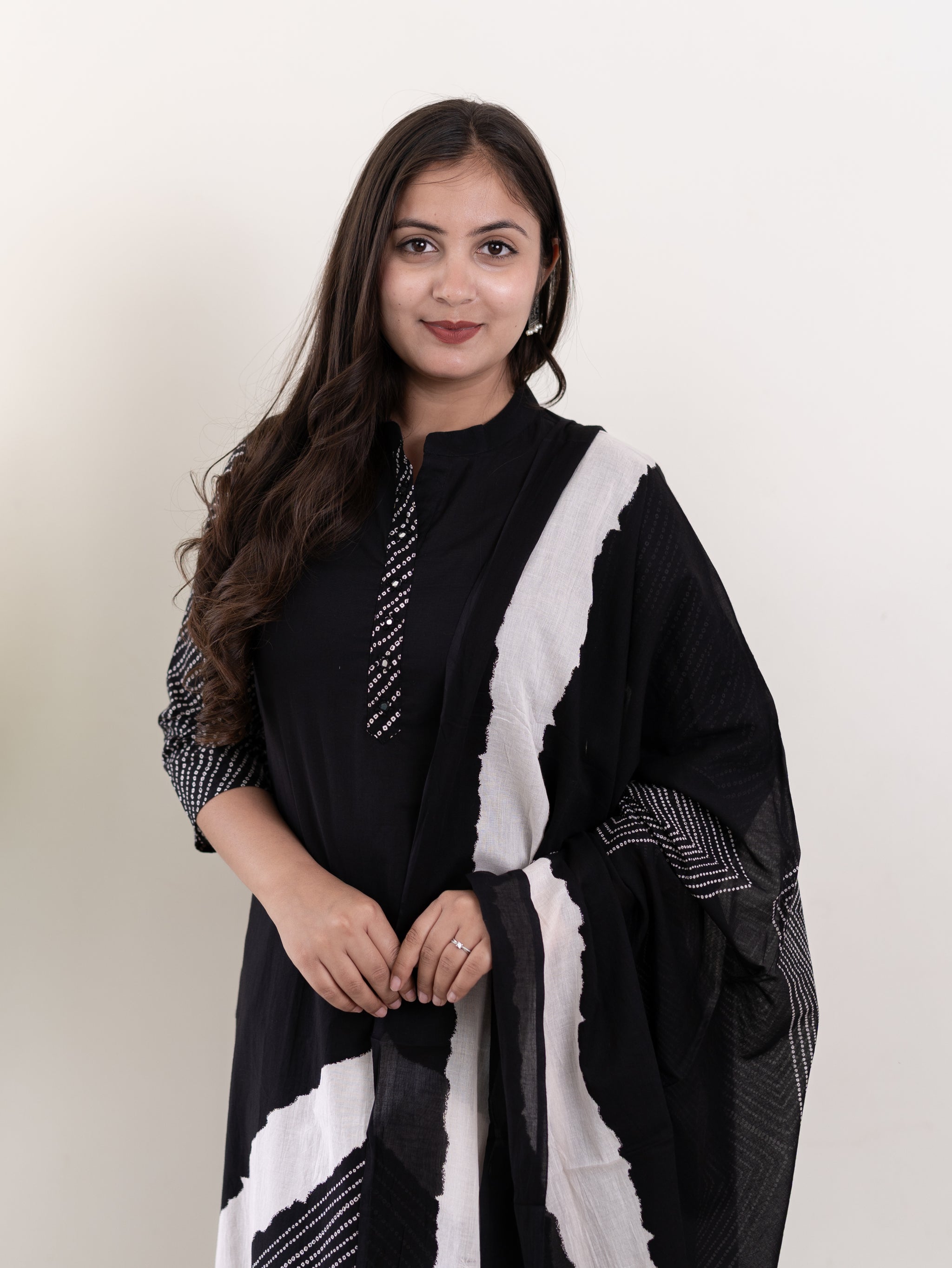 Isra Black Cotton Bandhani Straight Dupatta Set