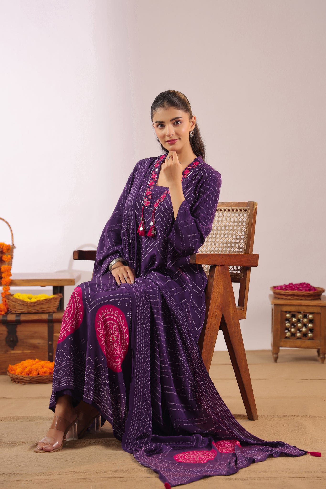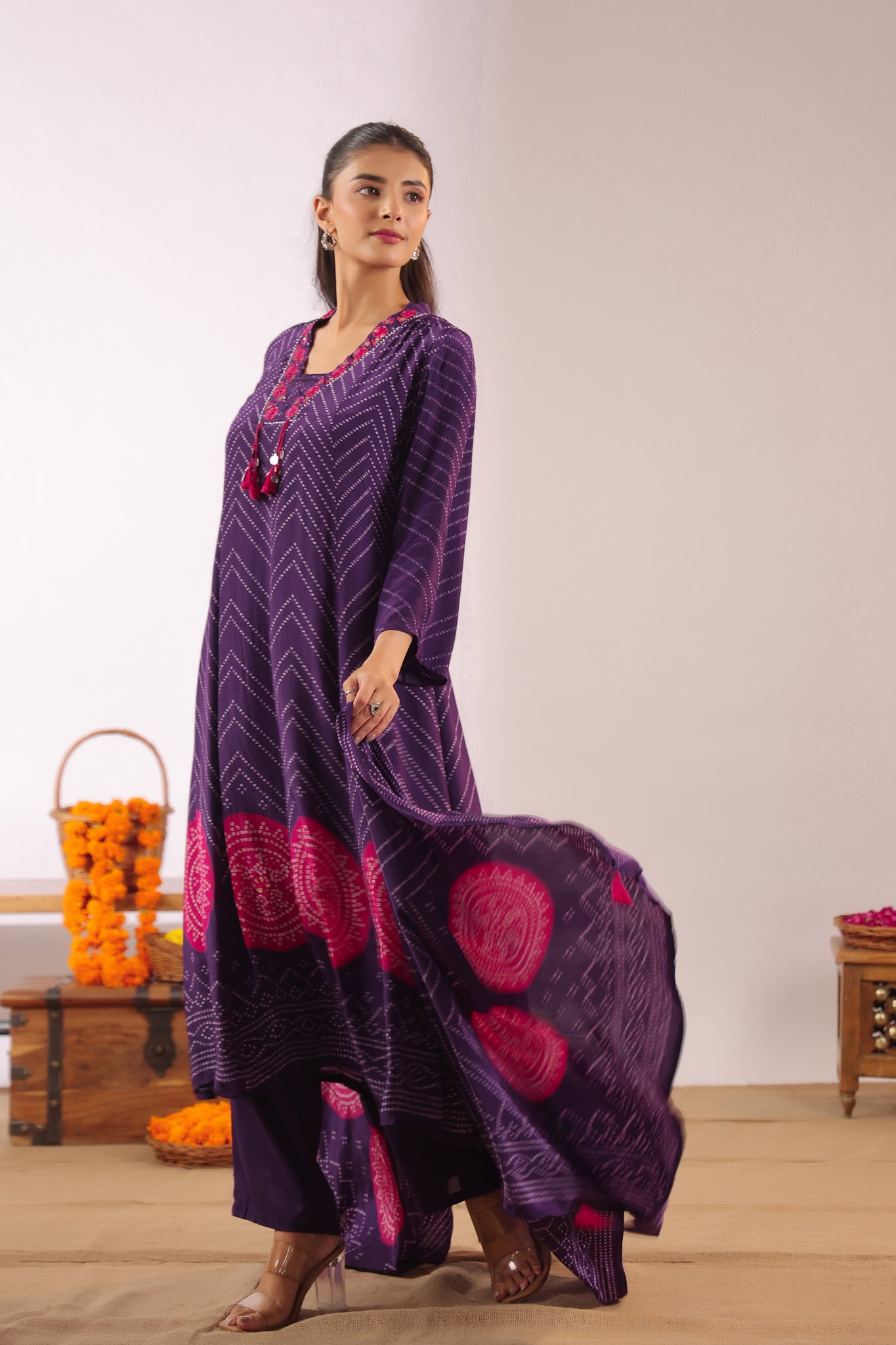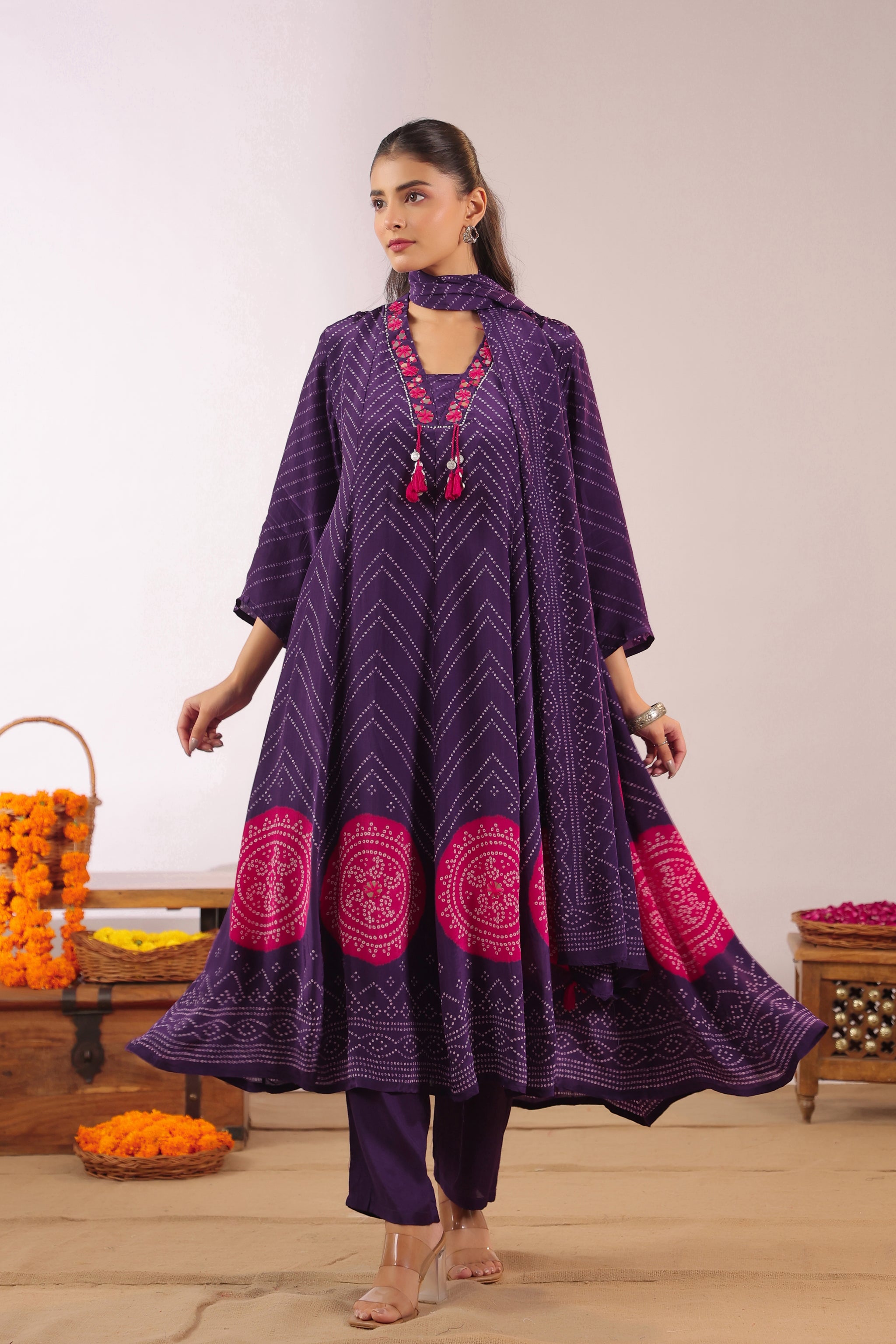 Jiva Crepe Bandhani HandEmbroidered Pant Set