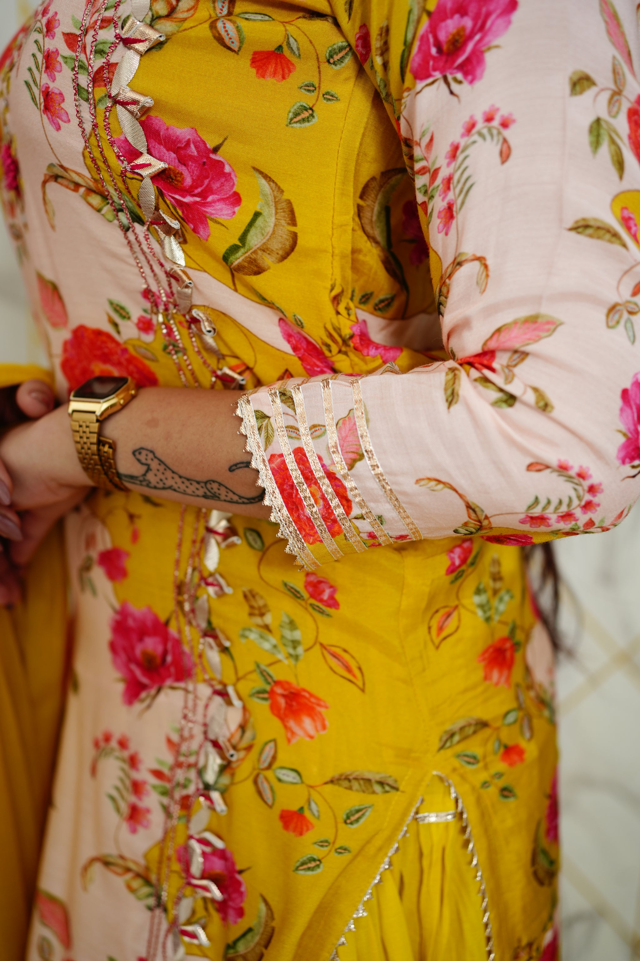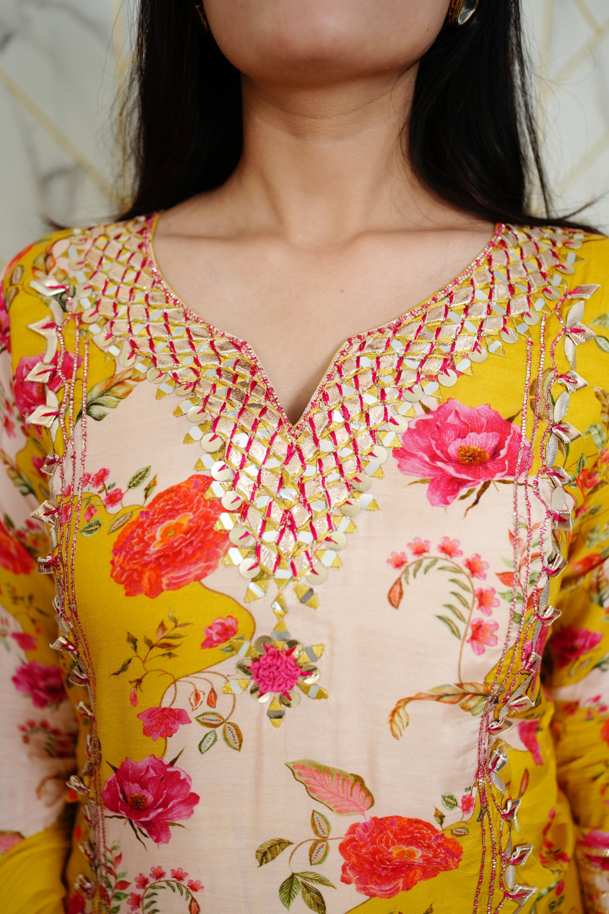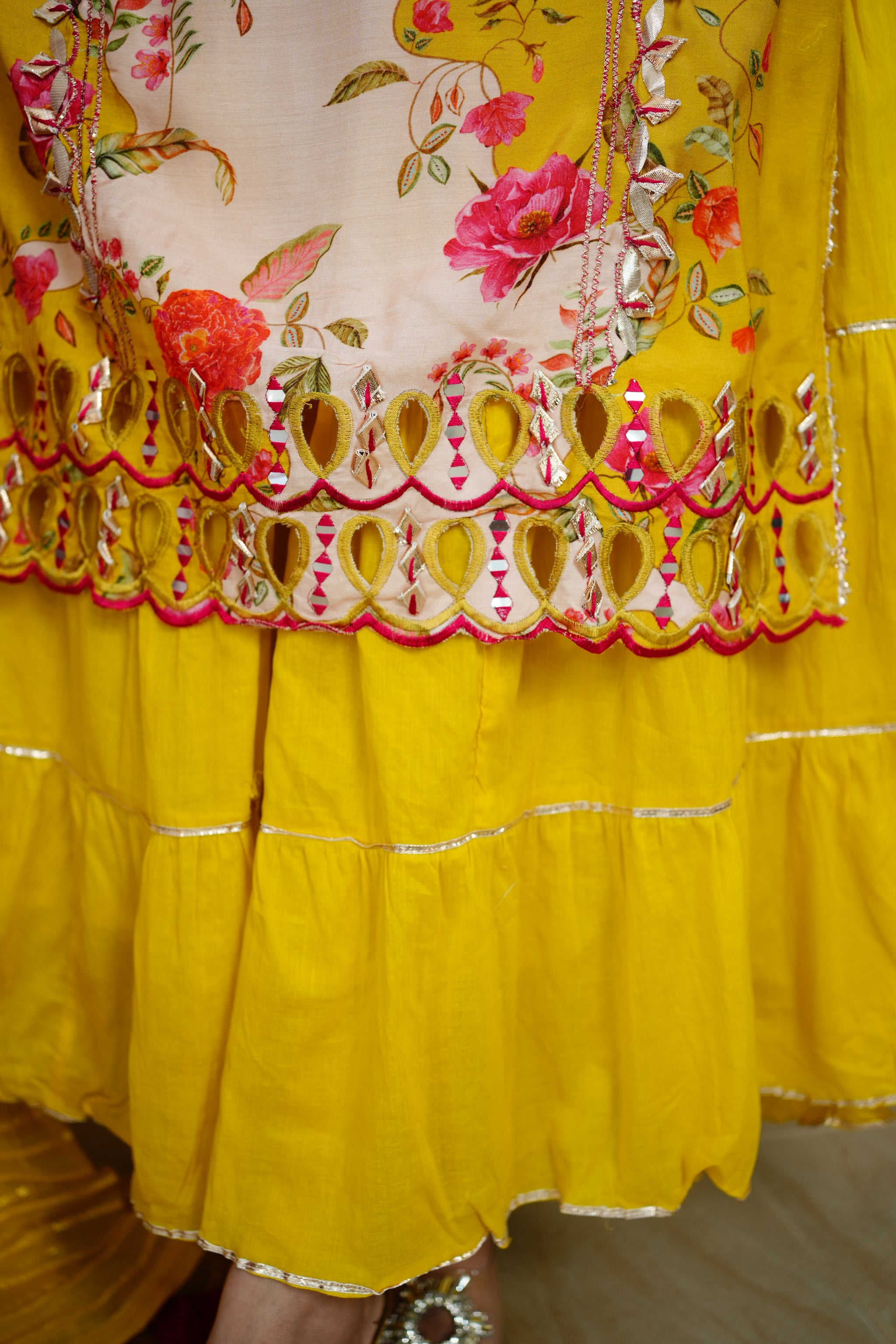 Bring charm and comfort together with this beautiful muslin kurta paired with an attached mul cotton skirt. The muslin gives a soft, flowy look, while the mul cotton skirt feels airy, light, and super comfortable.