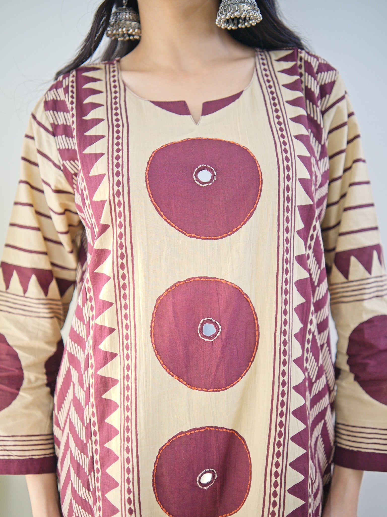 Harshi Wine Cotton Ajrakh Katha Detailed Dupatta Set